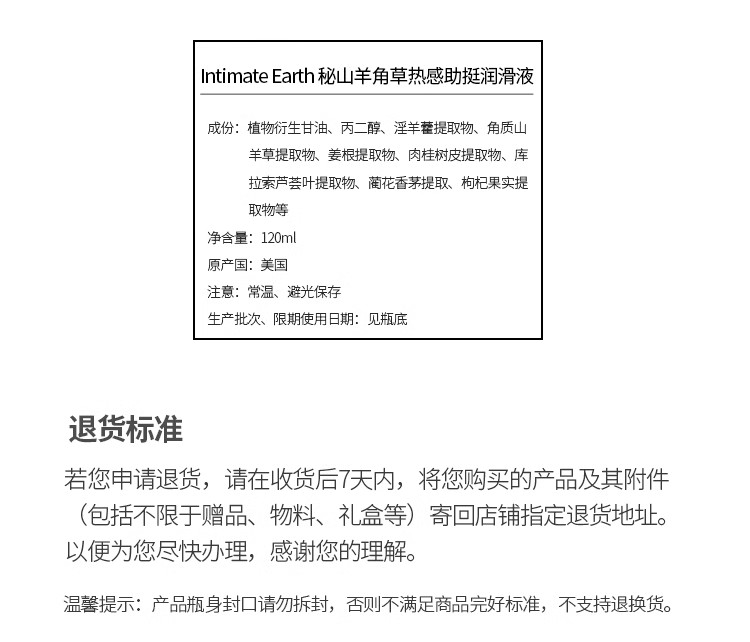 Intimate Earth 热黄瓜 男性活力热感助勃润滑液可口爱