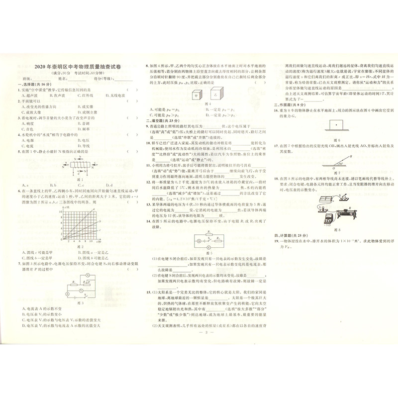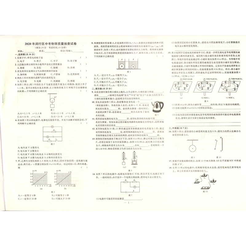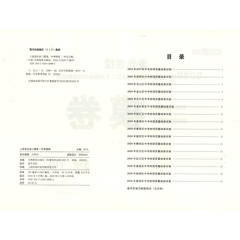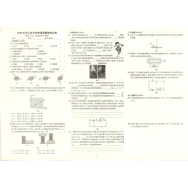 2020年钟书金牌走向名校 上海中考二模卷 物理 赠答案和答题纸 上海市各区九年级第二学期质量调研试卷精编 吉林教育出版社
