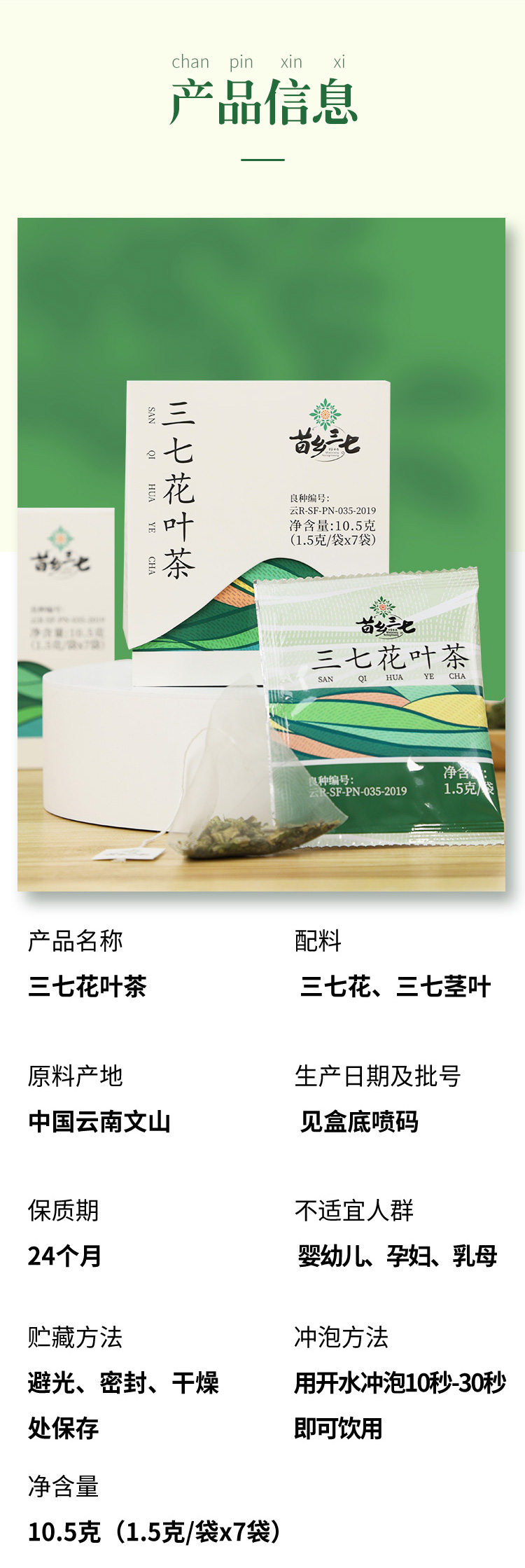 苗乡三七花叶茶 1.5g/袋*7袋/盒有机三七花茶养生花茶