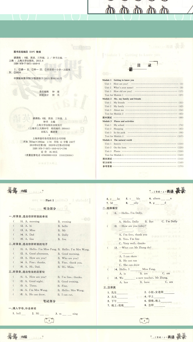钟书金牌课课练 三年级上 英语N版 全新修订版 3年级上册/第一学期 上海小学教辅课后配套练习期中期末单元测试训练