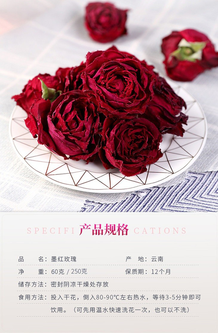 冻干墨红玫瑰,玫瑰中的“爱马仕” 冻干玫瑰花茶 不熏硫 不加色素 整朵玫瑰花冠茶 礼盒装