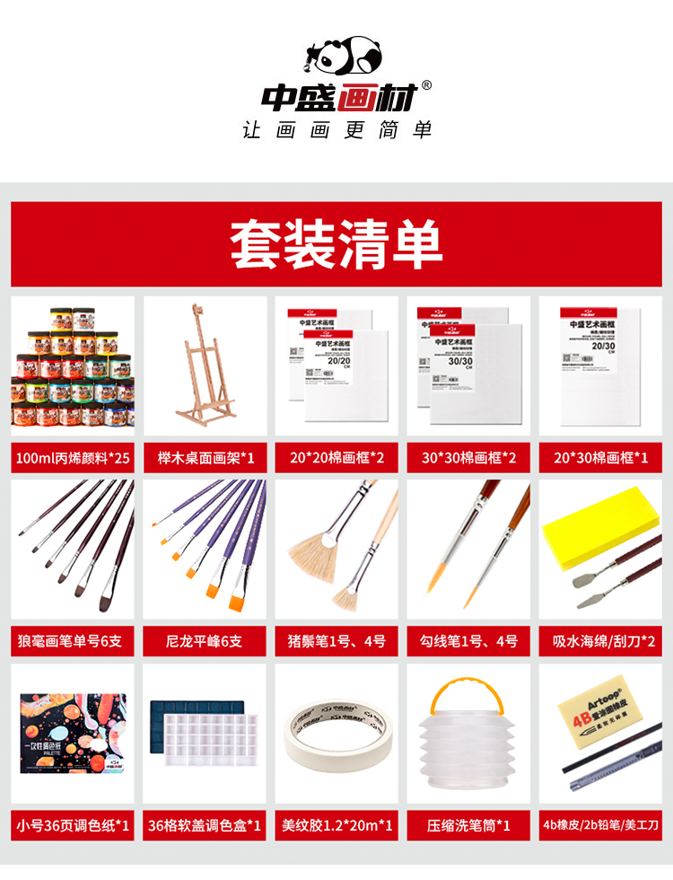 中盛画材 丙烯颜料袋装120ml 绘画套装