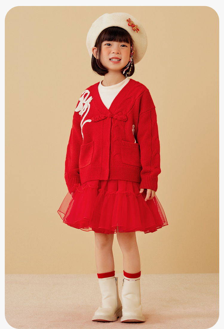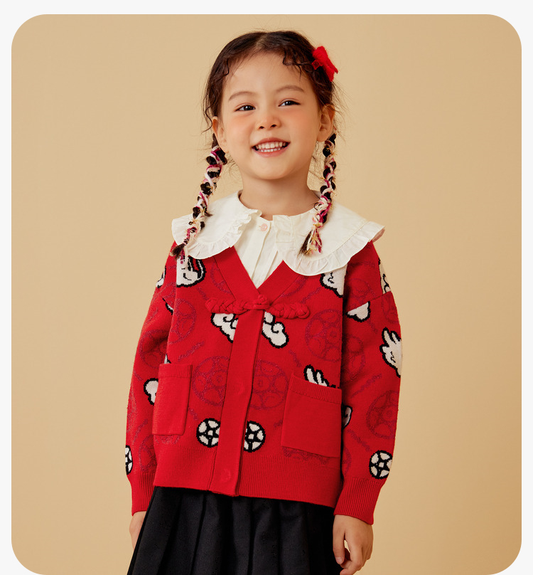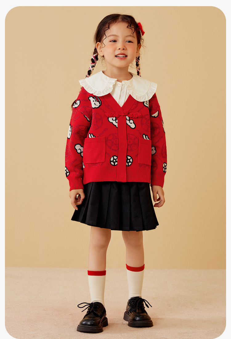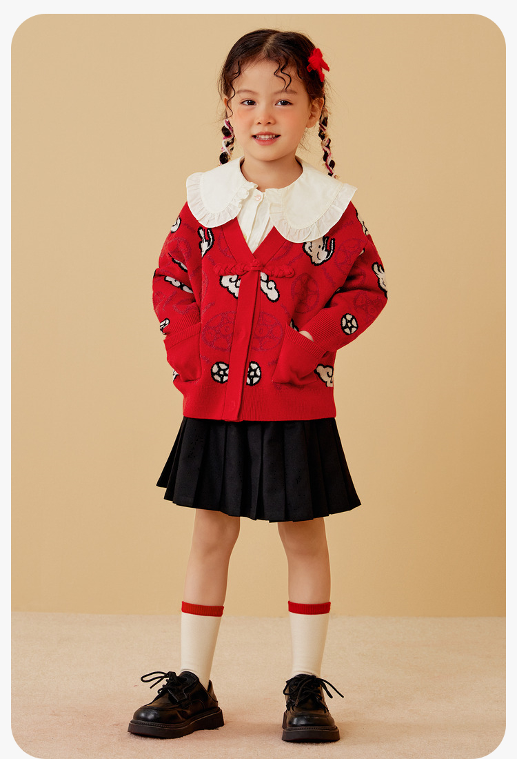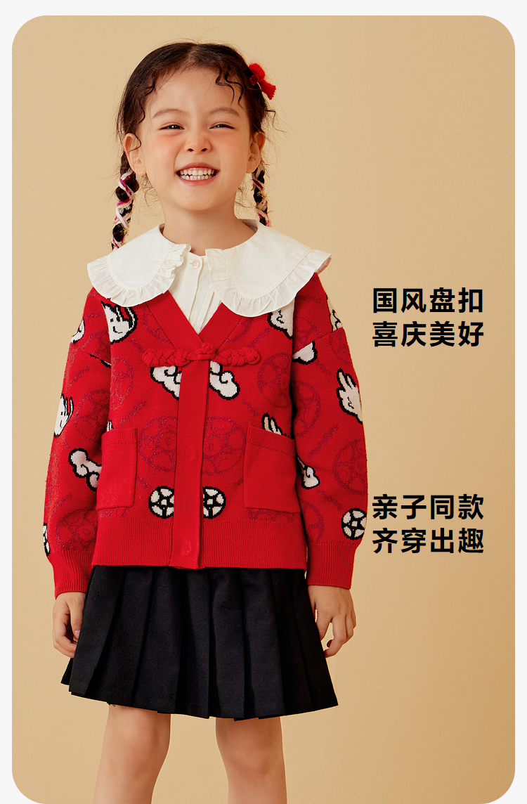 【mini亲子 儿童款】迷你巴拉女童开衫毛衣龙年国风母女装儿童毛衫