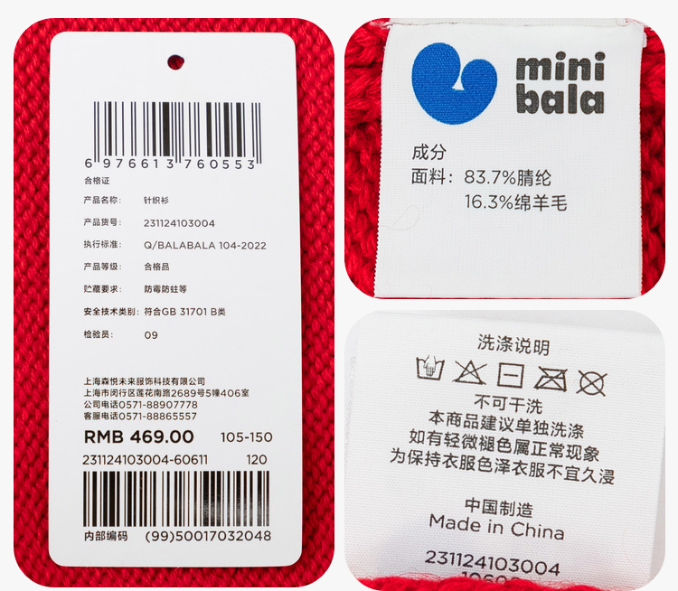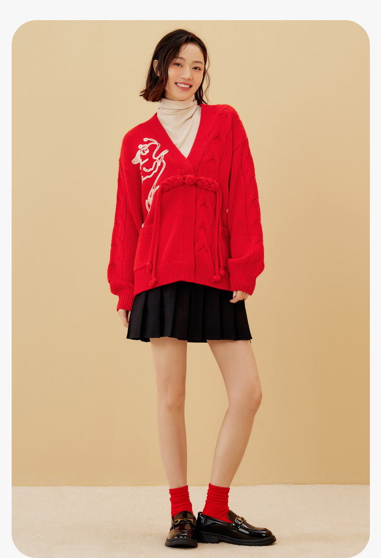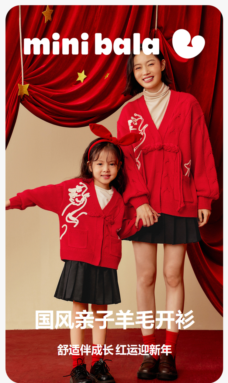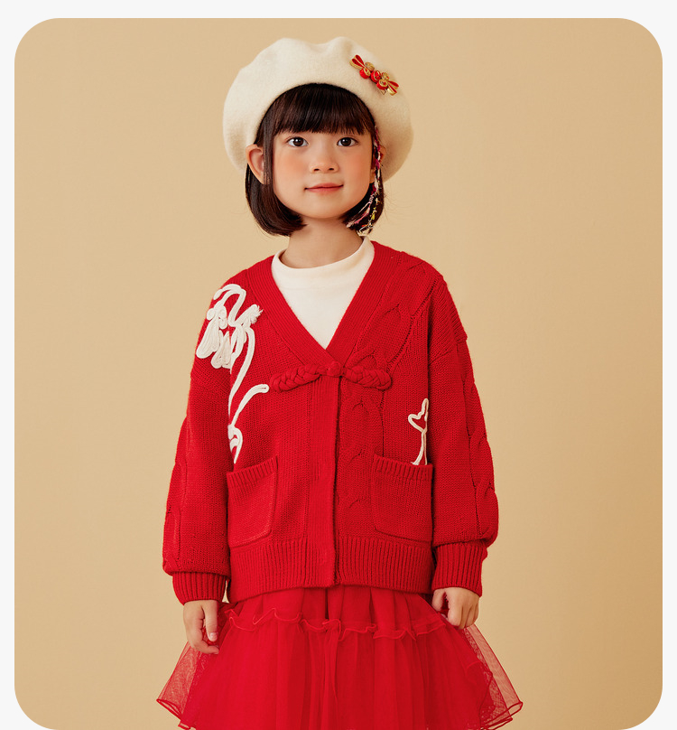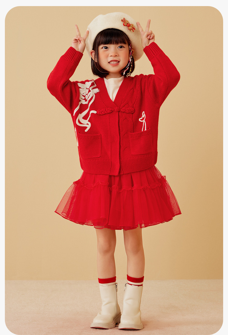 【mini亲子 儿童款】迷你巴拉女童开衫毛衣龙年国风母女装儿童毛衫
