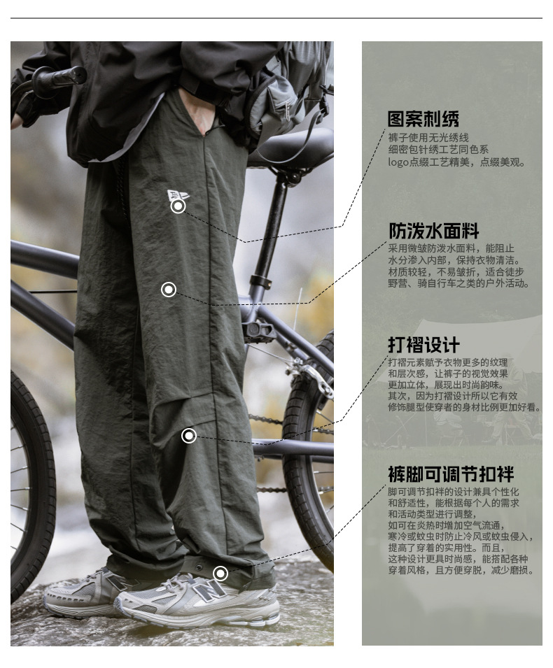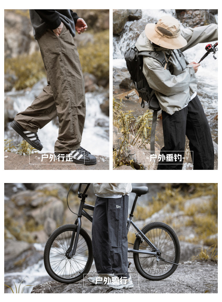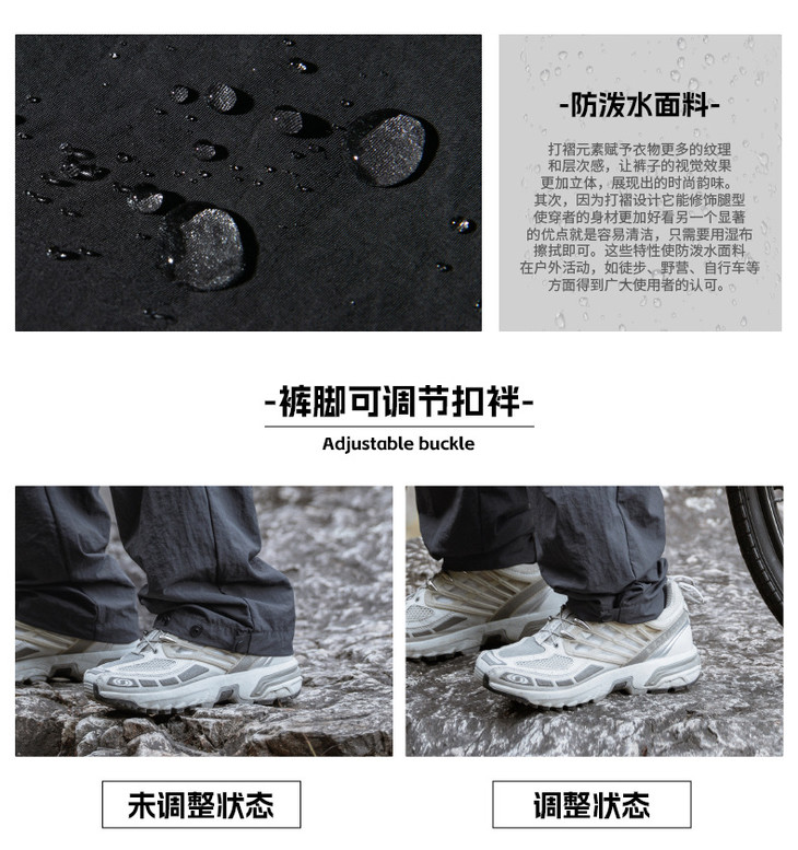 【打褶设计降落伞兵工装裤】男新款可调节脚口纽扣户外运动防泼水工装裤