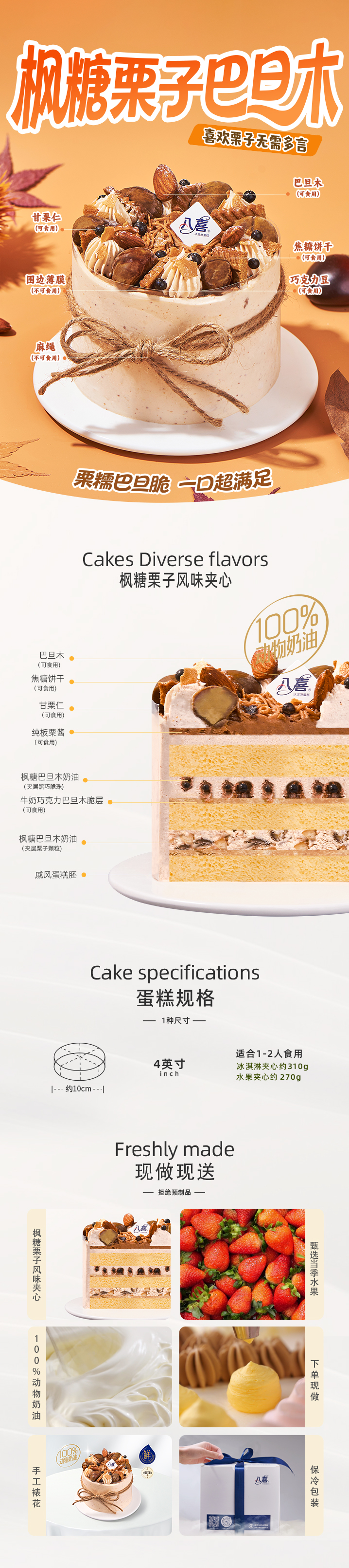 ※【枫糖栗子巴旦木】4英寸栗子生日蛋糕