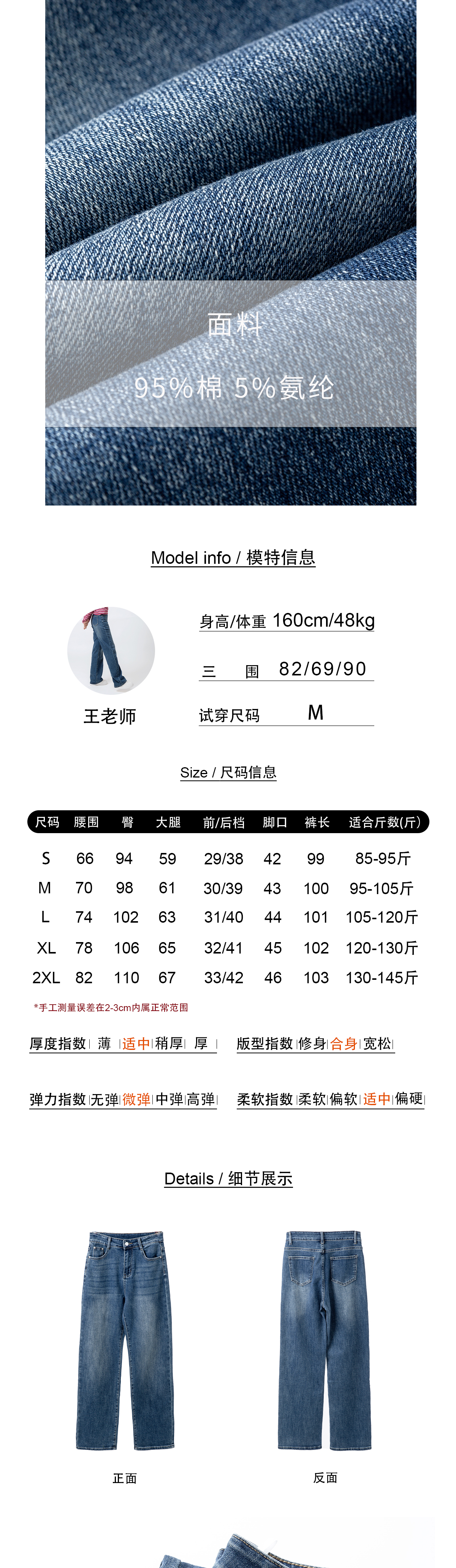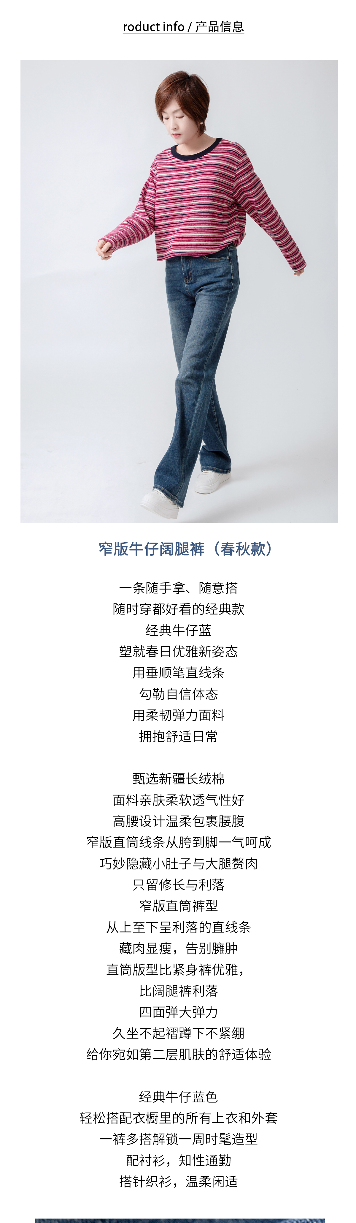 窄版牛仔阔腿裤(春秋款)