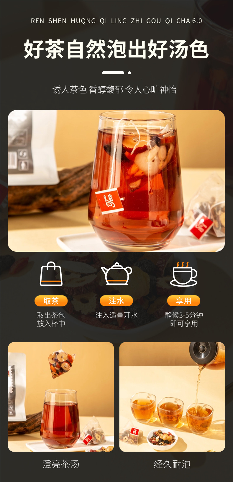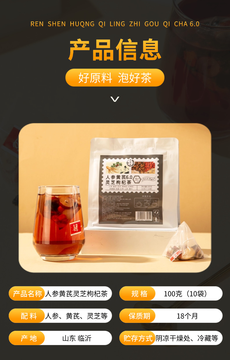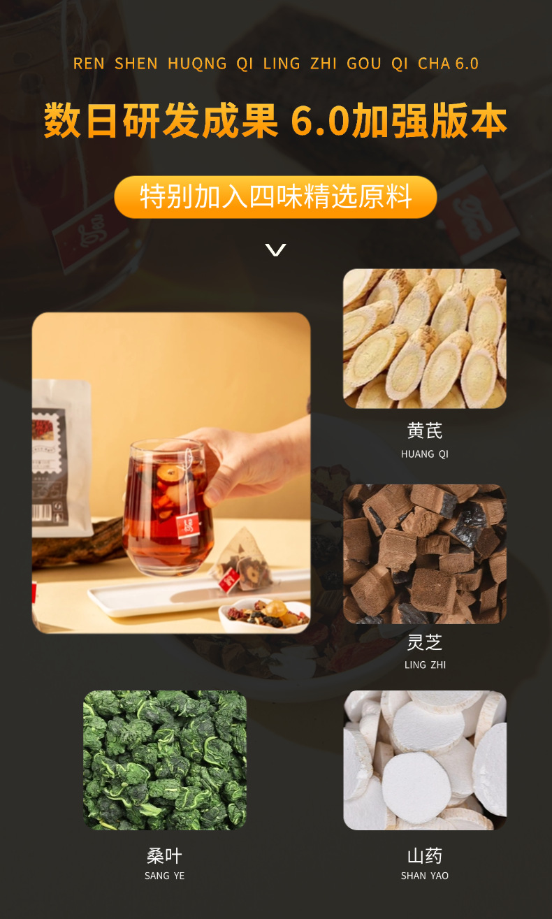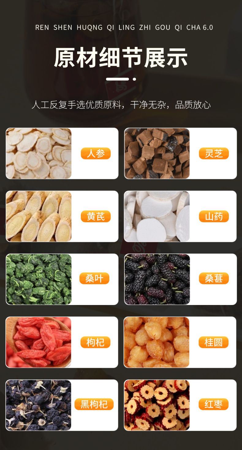 【粉丝专属❗️人参黄芪灵芝枸杞茶】甄选品质原料制作,特别添加黄芪/灵芝/桑叶/山药,原料清晰可见美味健康无负担,桑葚黑枸杞红枣桂圆桑叶山药养生花草茶L