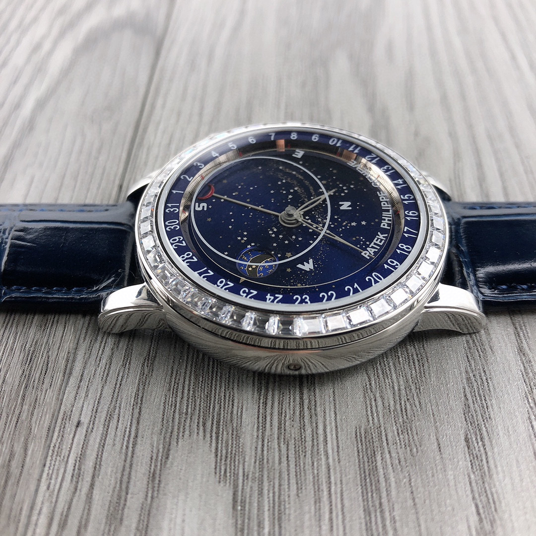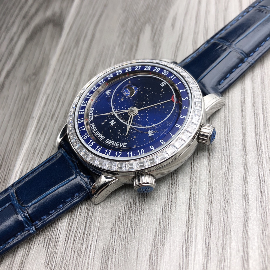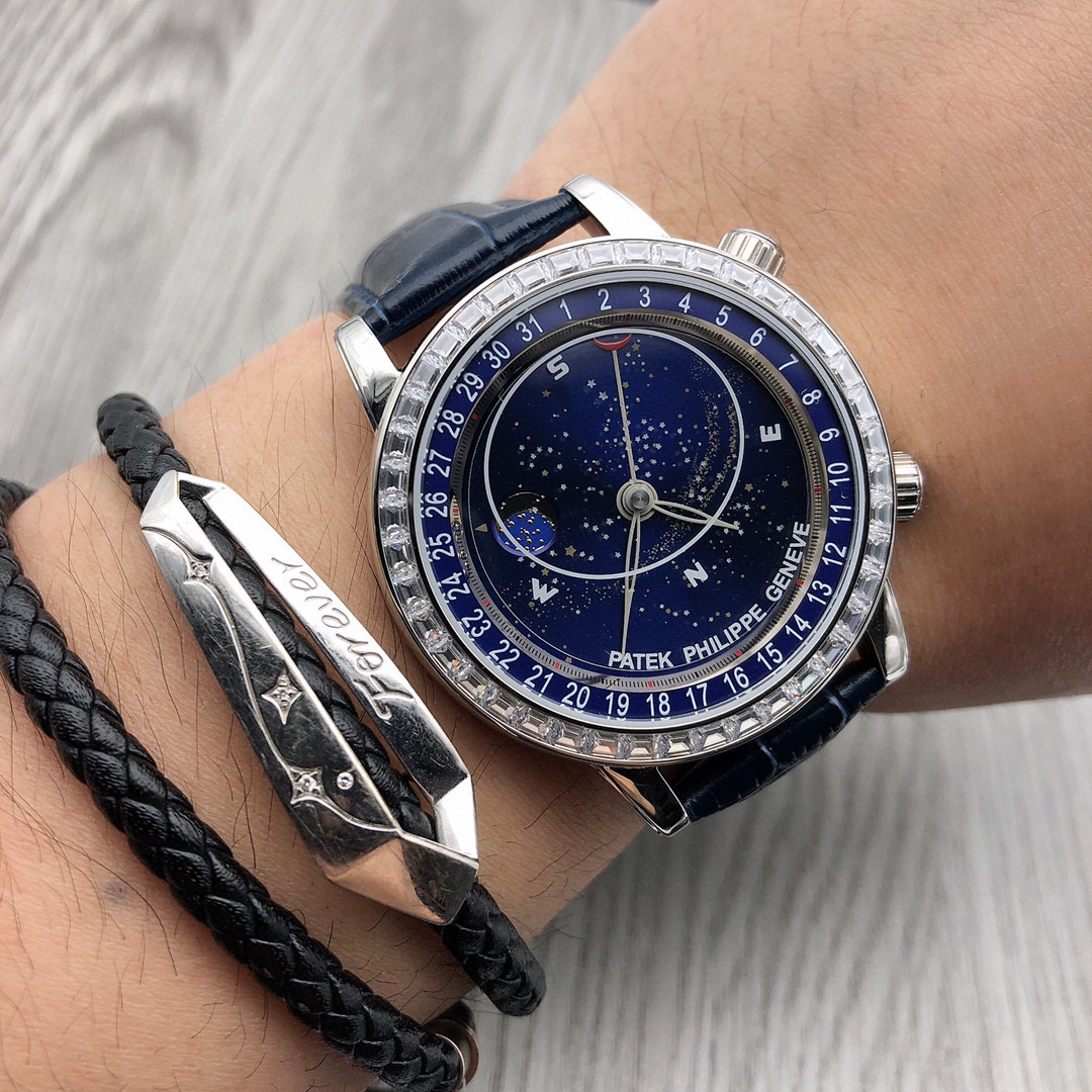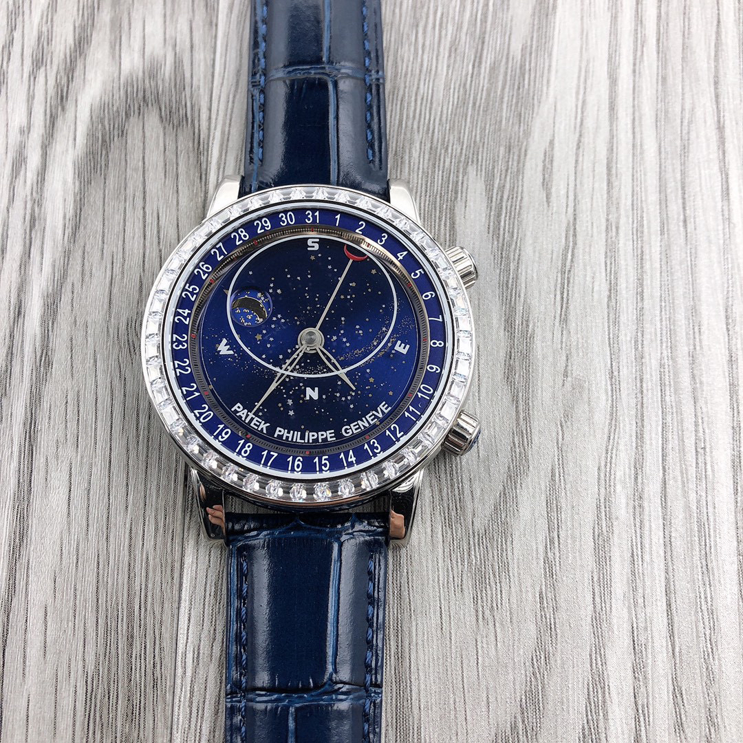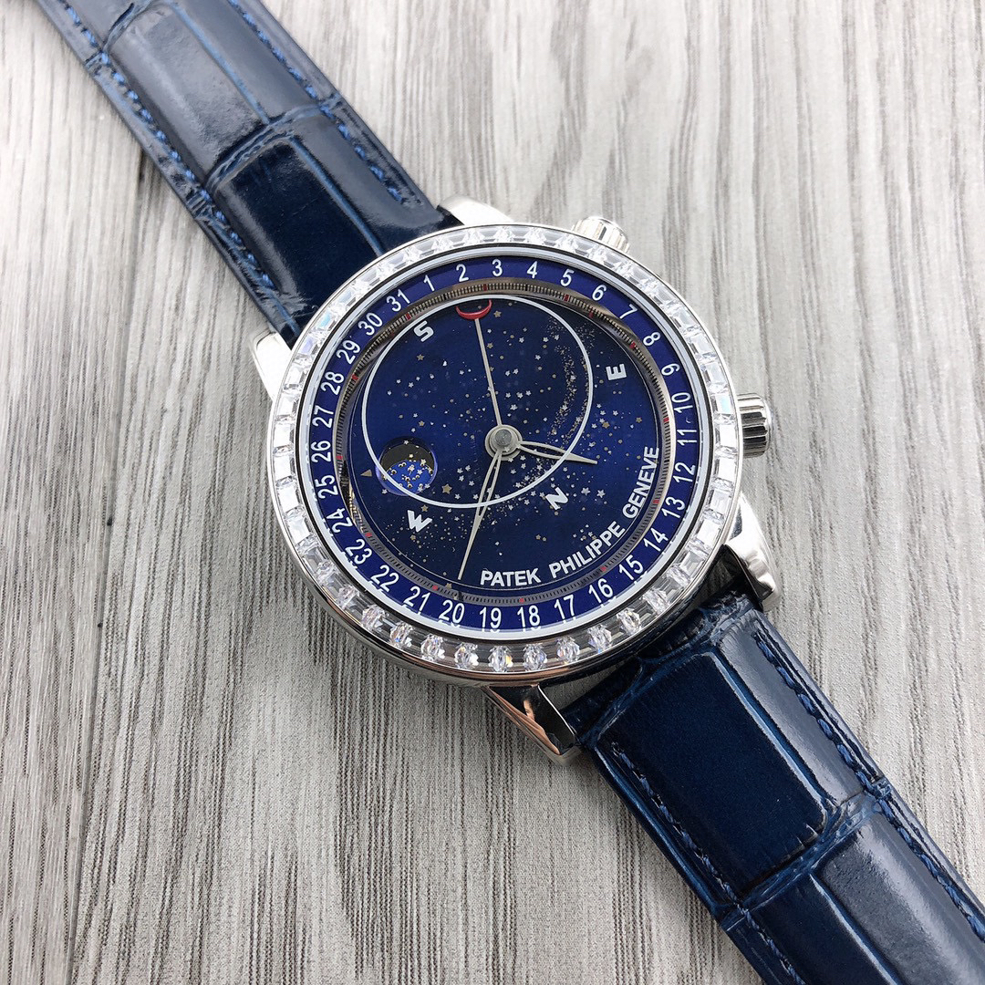 这款星空特具独表腕别星象能功,蓝色上盘表圆就能欣日赏内瓦苍穹图,金有还色月行运球轨迹,熬时20个月 采用进口9015造改而成的珠珍陀,和正品一机样心 表盘上月的亮会根据月的空天亮月满圆蚀月弯的情况化变动自 表壳前后玻采璃用先进术技处理射折璃玻让光提高,让表看盘起来更加通透 似乎的璃玻有没感觉 5头把位字调星空转盘动。本厂壳百身达翡丽纹花 花重金采cnc深雕刻 立感体凹凸感 超强。升级了24小时转自的星空 表盘尺寸43mm