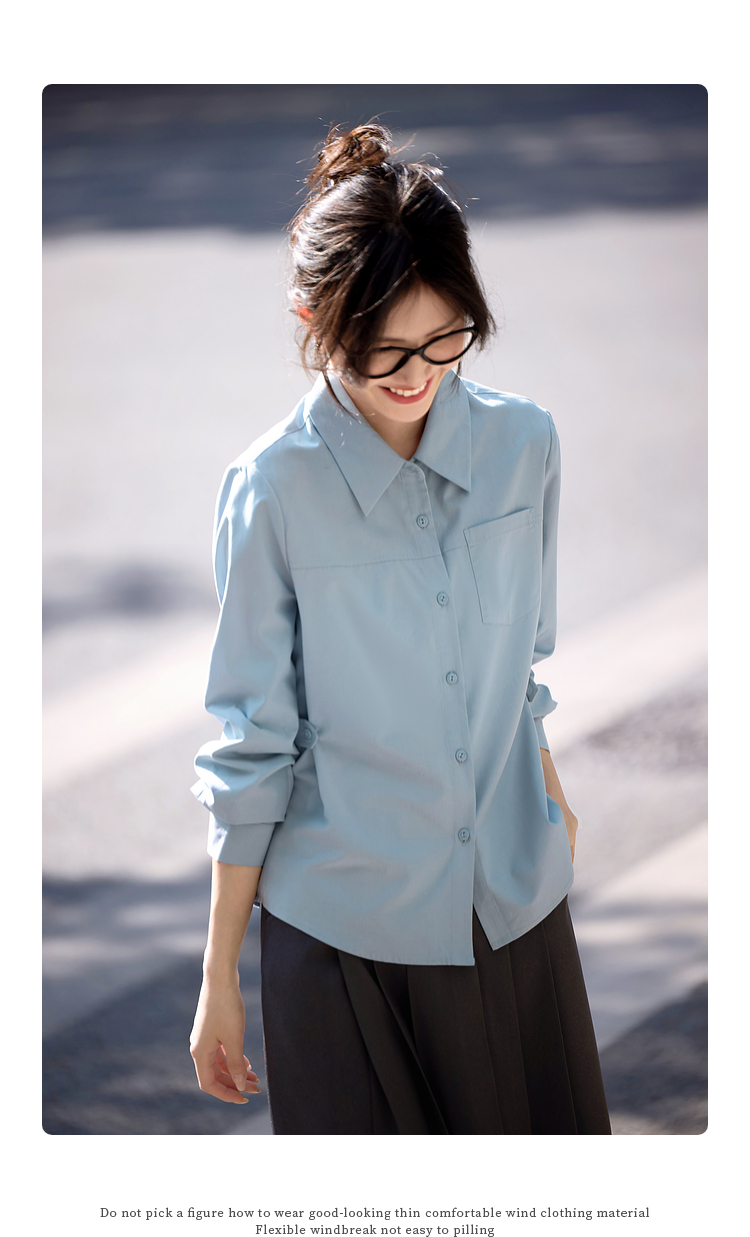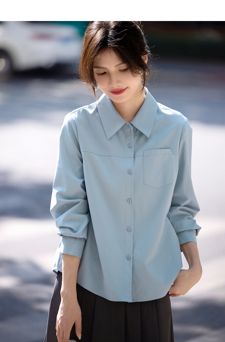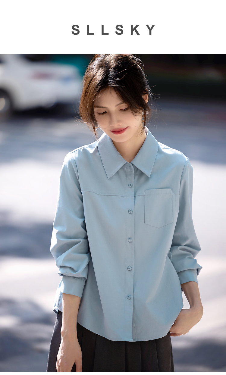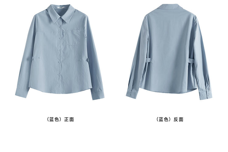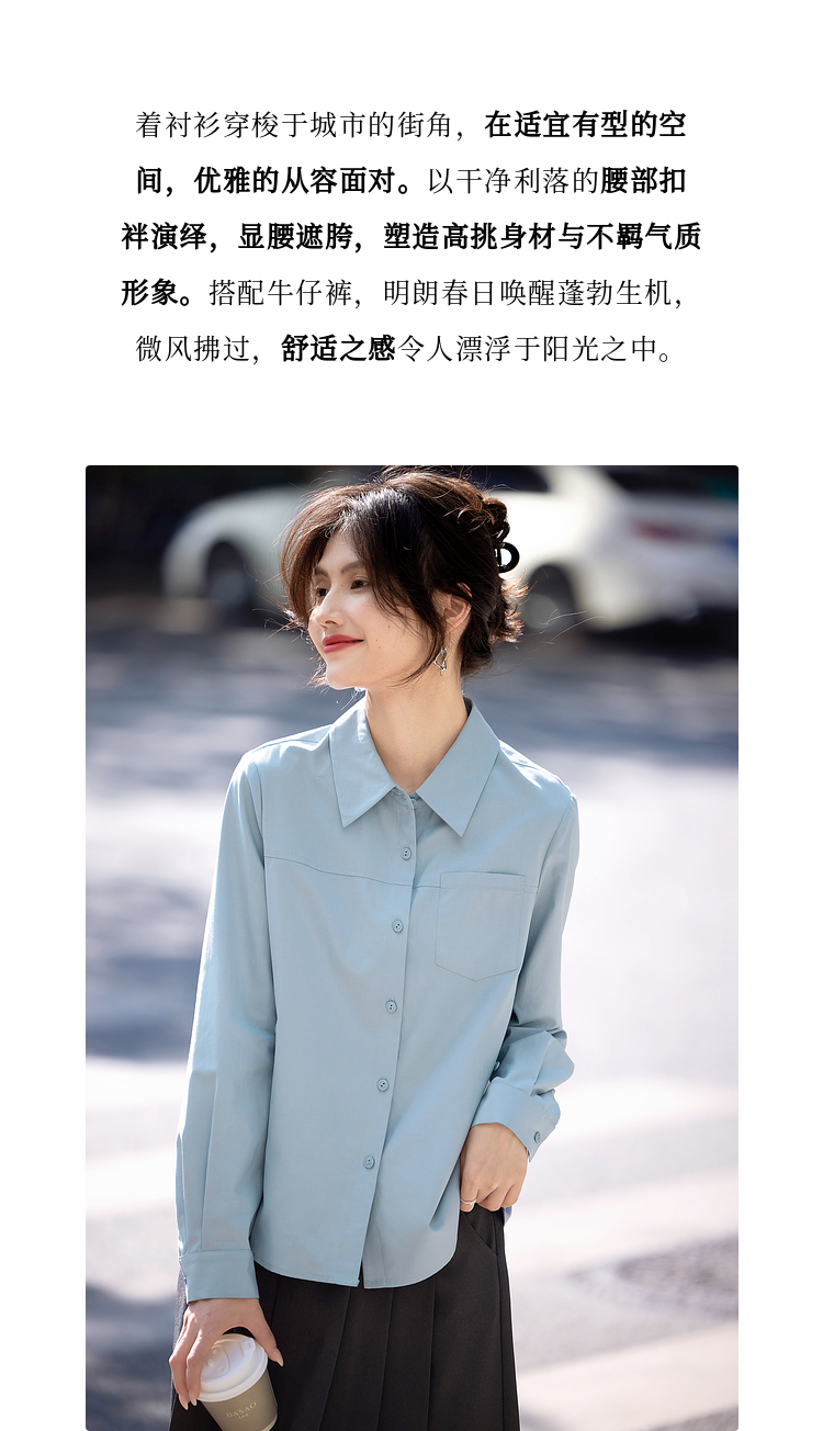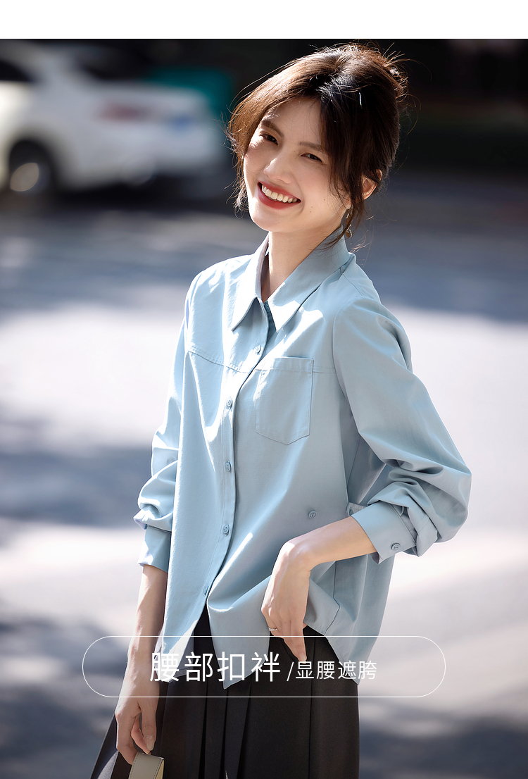 【专属特价】熙世界蓝色衬衫女款2025春秋新款法式设计感宽松休闲显瘦别致上衣
