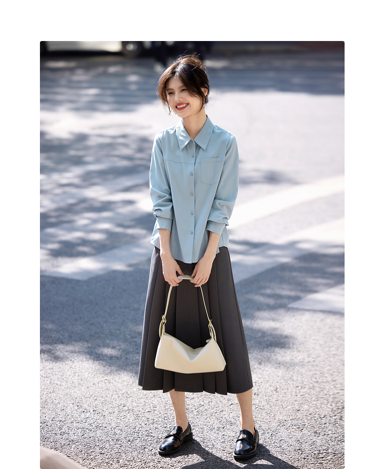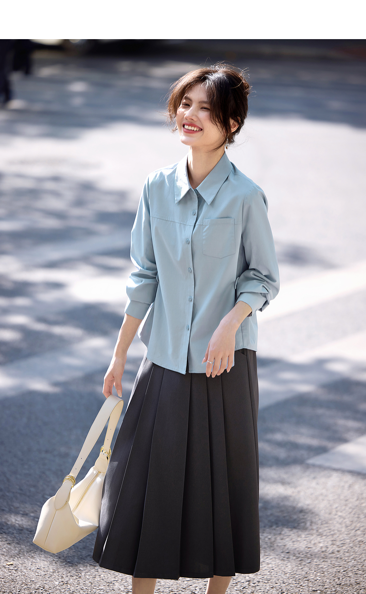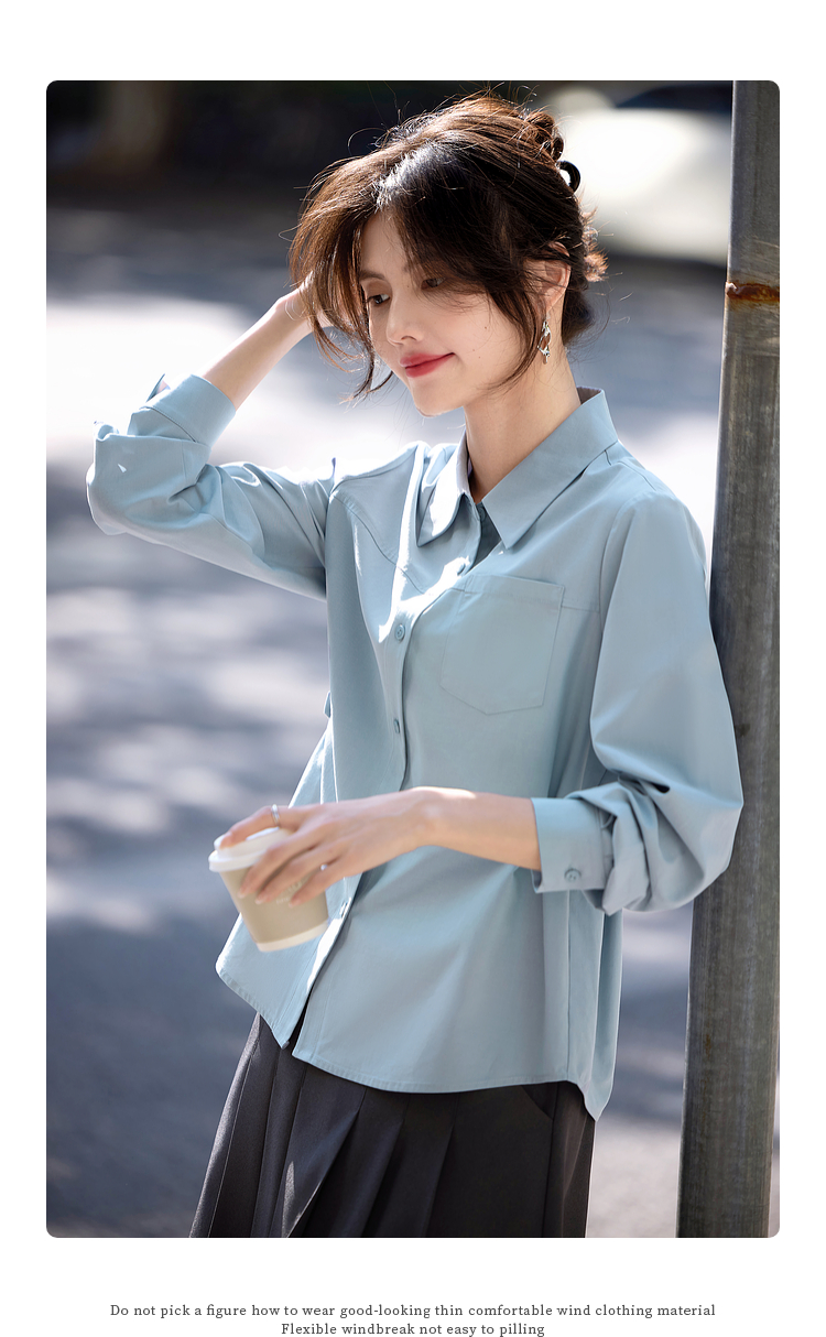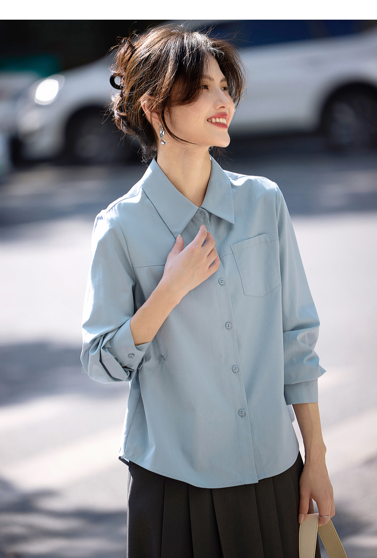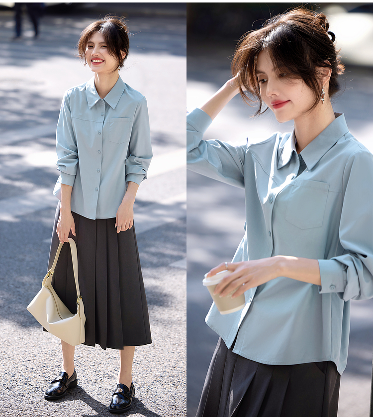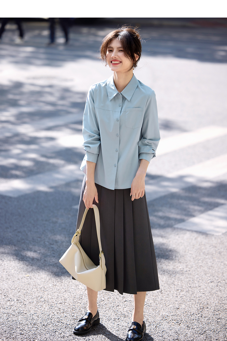 【专属特价】熙世界蓝色衬衫女款2025春秋新款法式设计感宽松休闲显瘦别致上衣