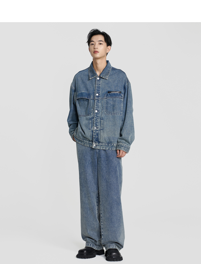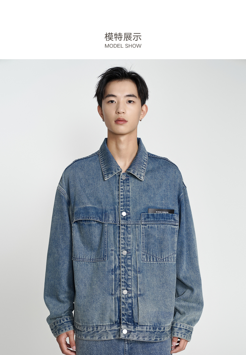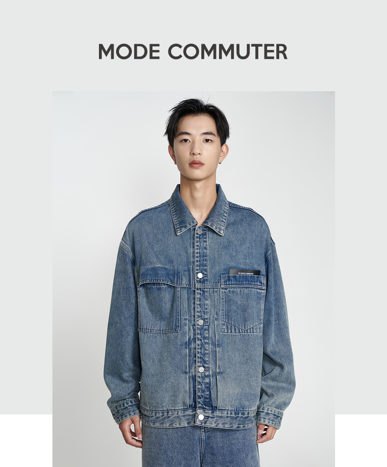 MODE COMMUTER | MC秋季宽松复古水洗翻领牛仔夹克MCE1E8T05C