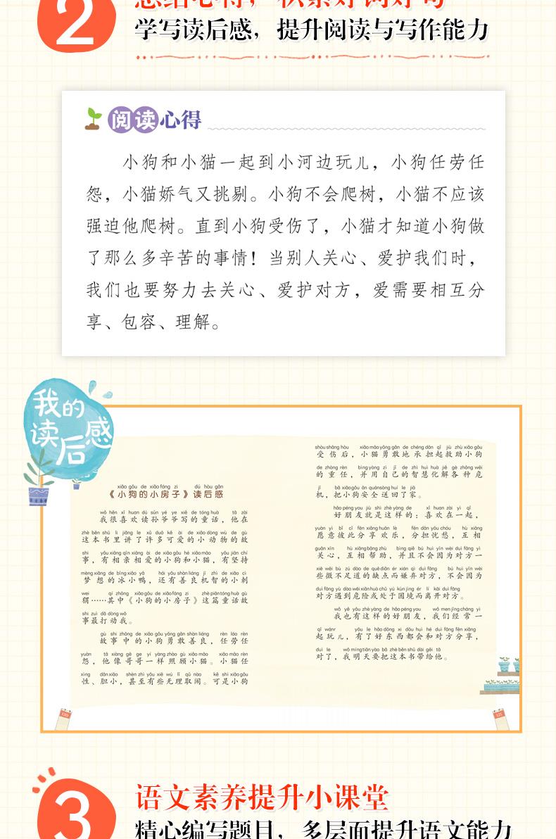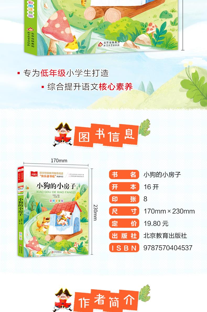 本书收录了孙幼军的4篇中短篇童话。其中《小狗的小房子》讲的是小猫和小狗一对好朋友一起去玩儿的故事。小狗为小猫搬沉重的房子、用尾巴钓鱼、上树捉虫。小狗受伤后,小猫反过来照顾小狗,最终把小狗和小房子平安送到了家。