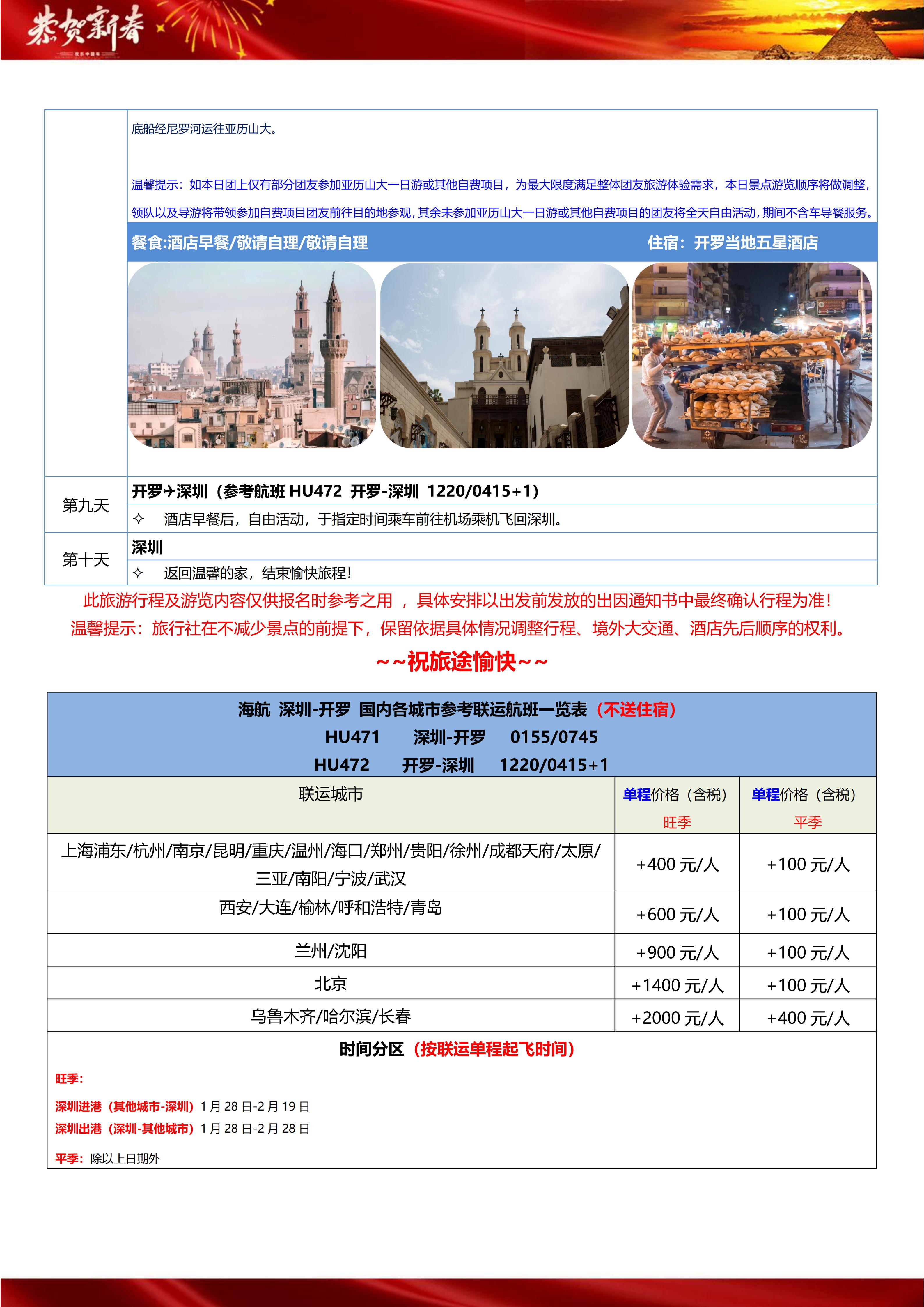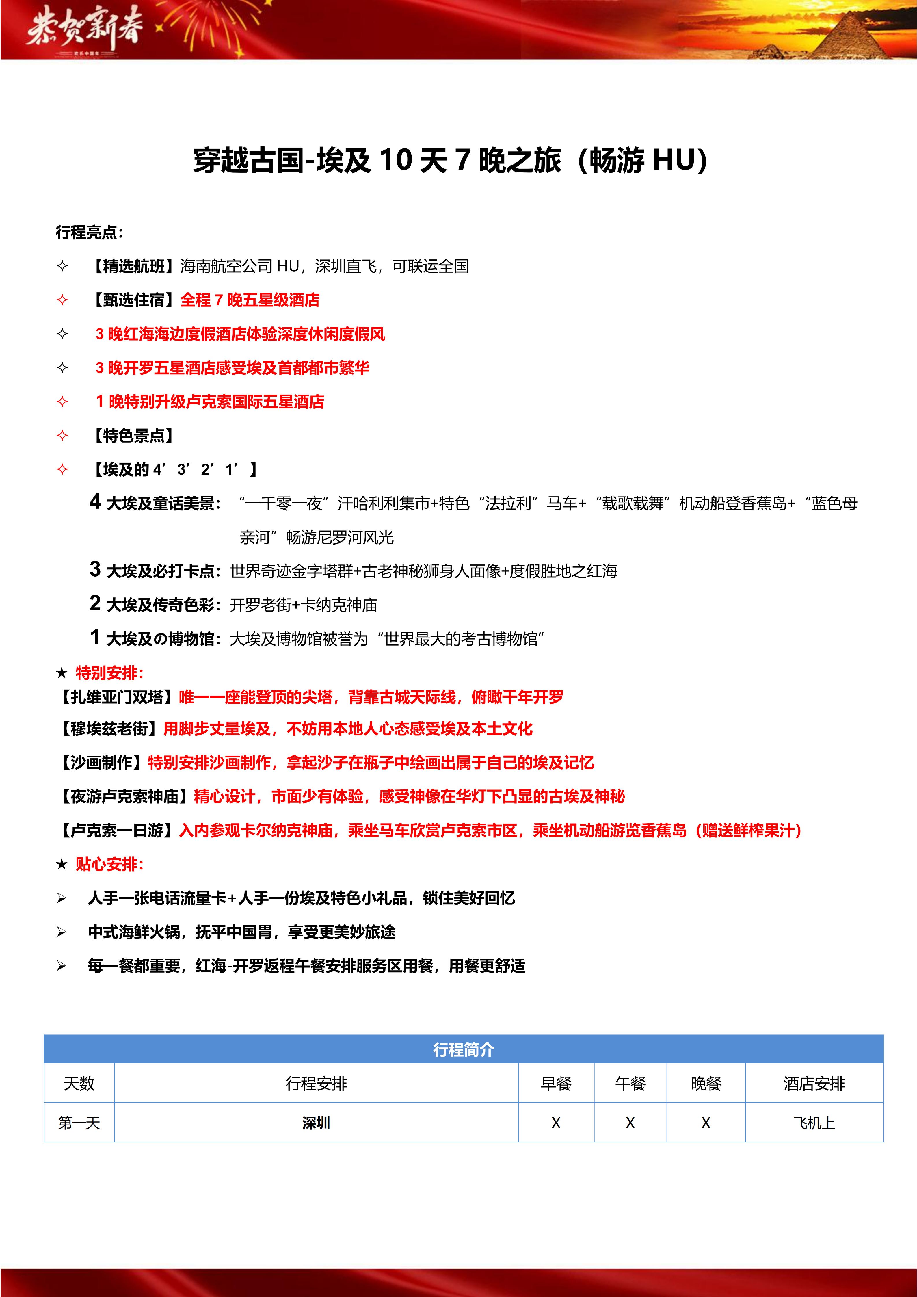 【春节不请假】<埃及10天7晚之旅-深圳直飞往返>全程当地五星酒店、金字塔群+狮身人面像+度假胜地之红海+大埃及博物馆+开罗老街+卡纳克神庙+扎维亚门双塔+夜游卢克索神庙+沙画制作