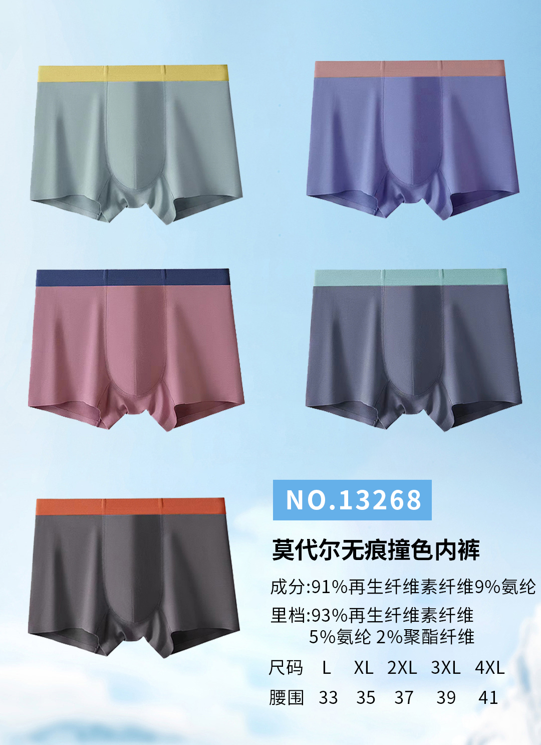 50s/80s超细莫代尔大红净色男士平角内裤3268/3029/13268