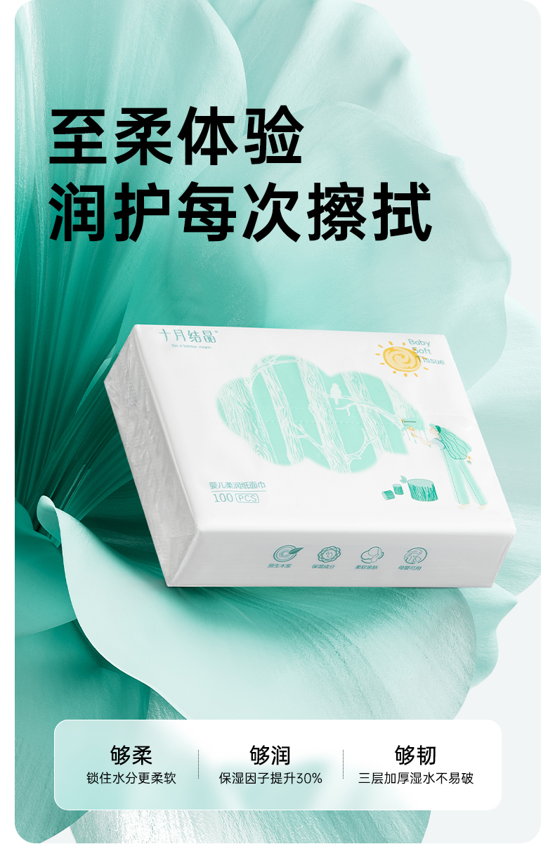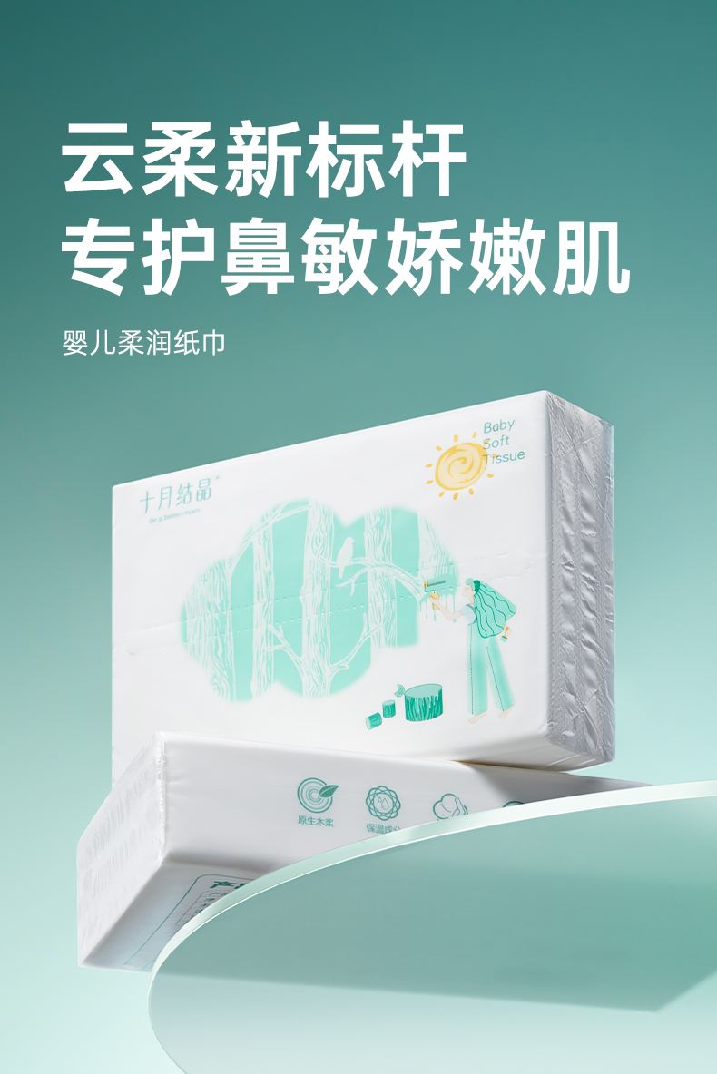 【100元3件随心配】(买6件加赠帆布包)婴儿专用加柔型云柔巾抽纸巾100抽