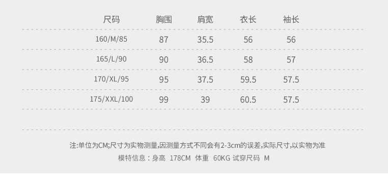 | 尺码: 85/160/M 90/165/L 95/170/XL 100/175/XXL | 面料: 其他 |