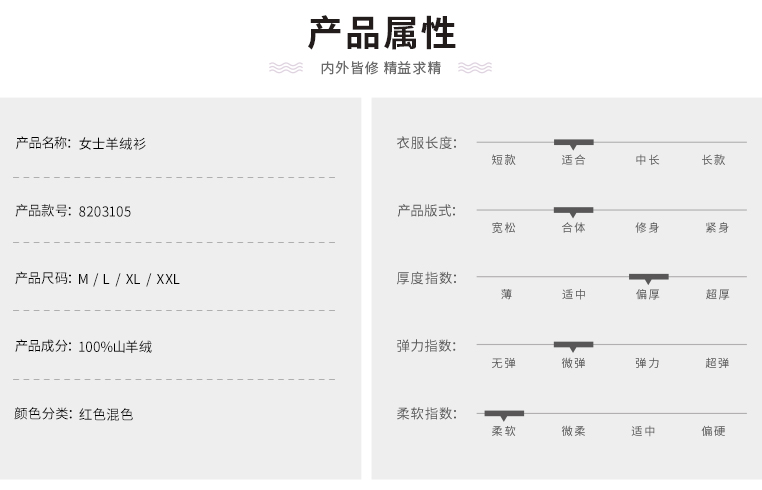 | 材质成分: 山羊绒(羊绒)100% |
