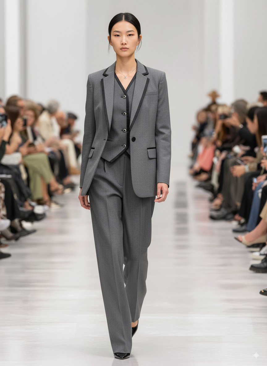 商品:Anica HN 通勤百搭撞色边无领西服外套(套装上)