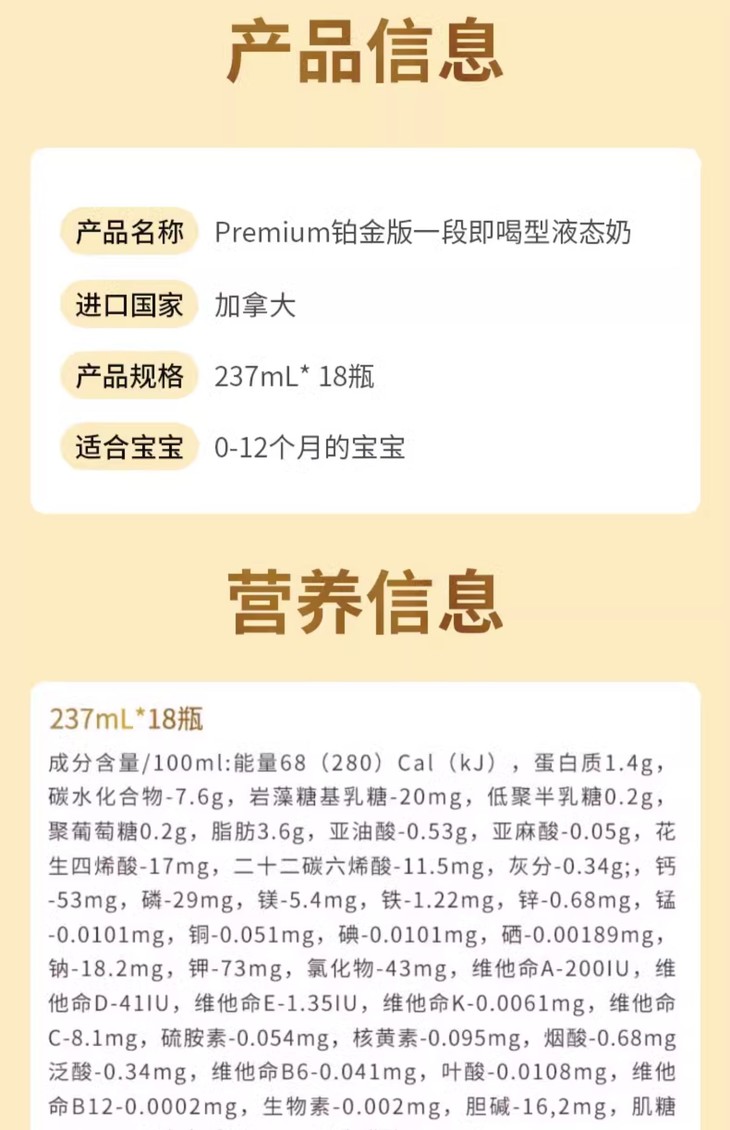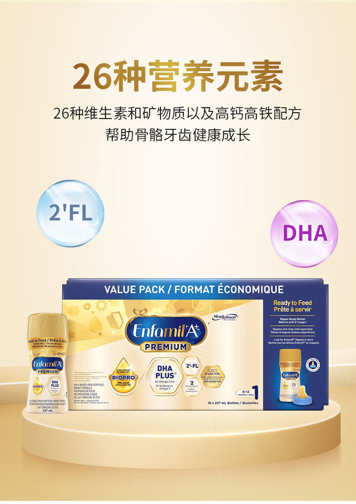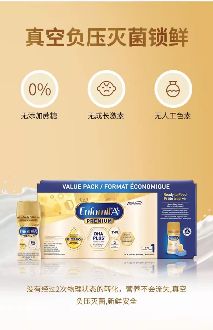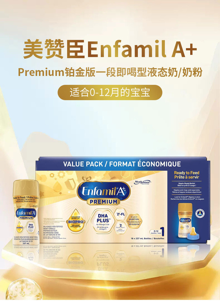 【跨境商品】加版美赞臣1段白金版水奶 237ml*18瓶 保质期至26.07 报关后不支持退换货,介意慎拍!