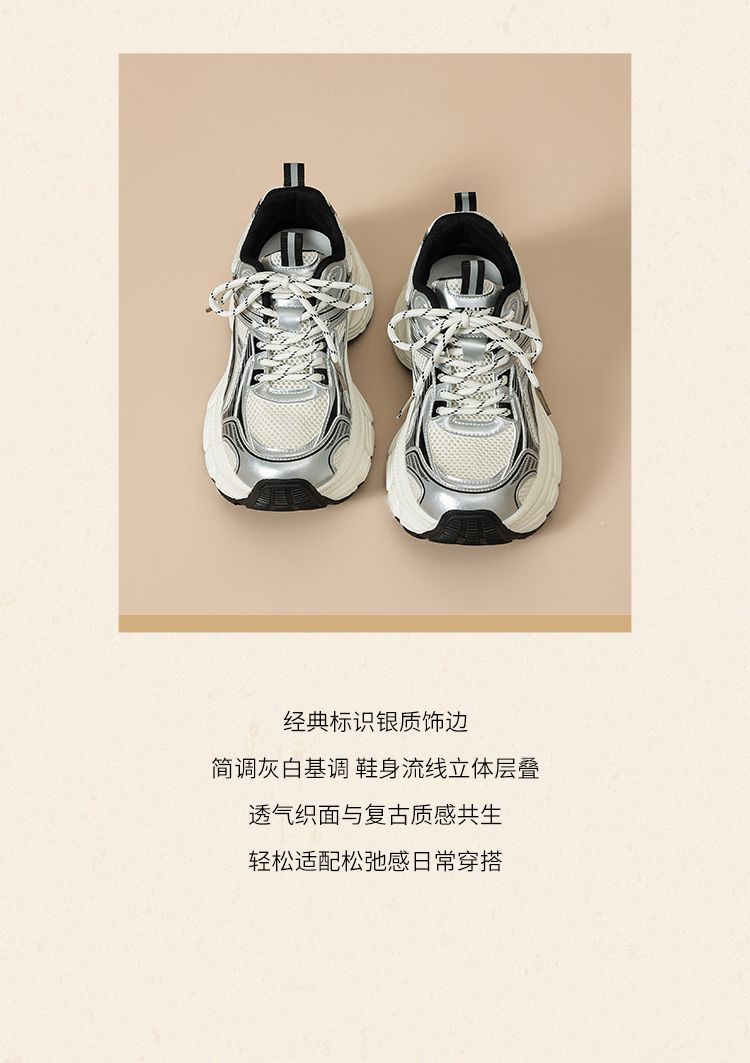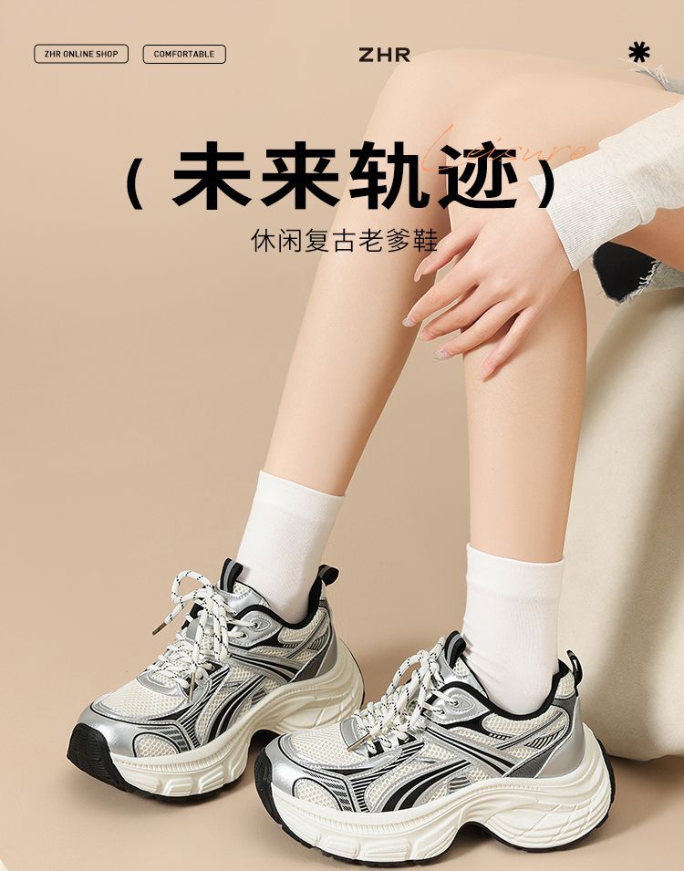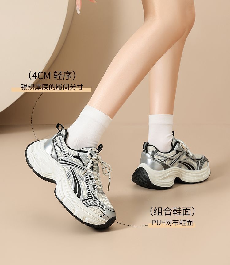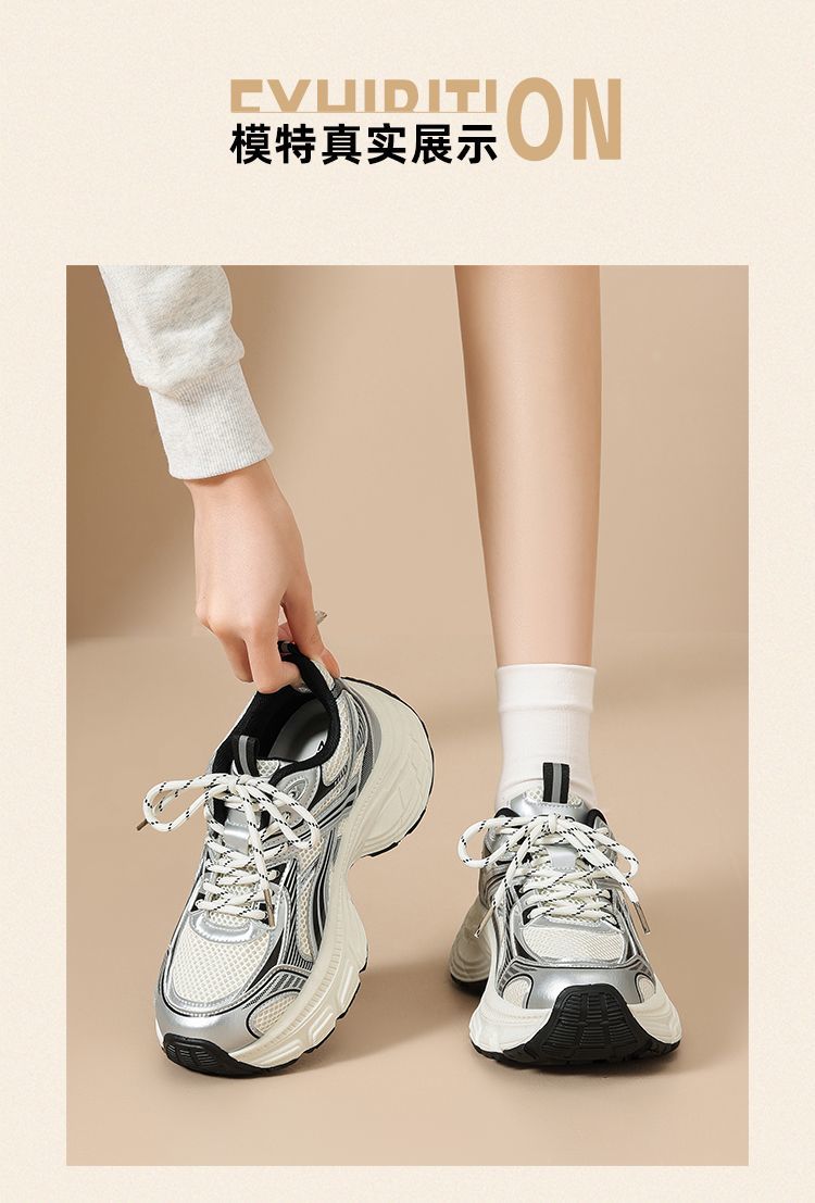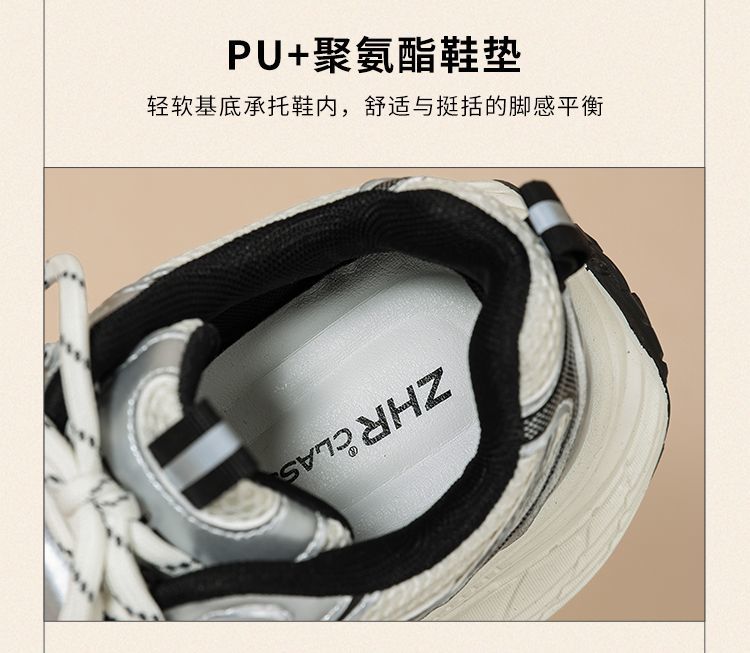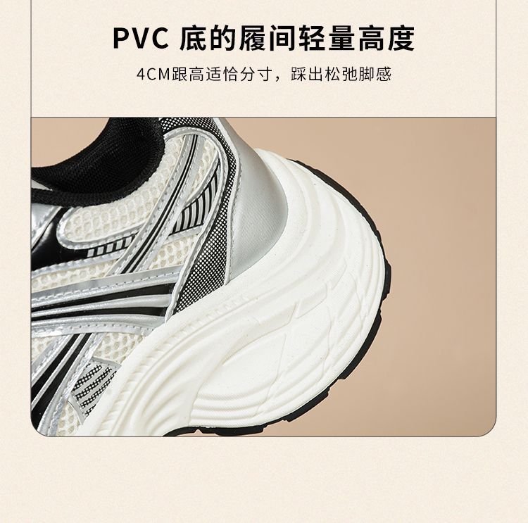 ZHR【增高4cm】厚底银色老爹鞋2026春季新款网面透气运动休闲鞋女