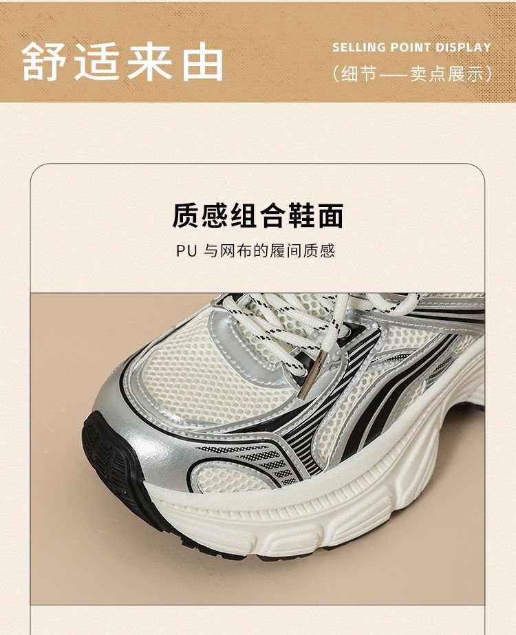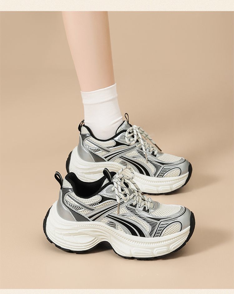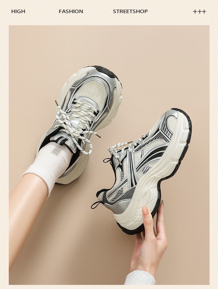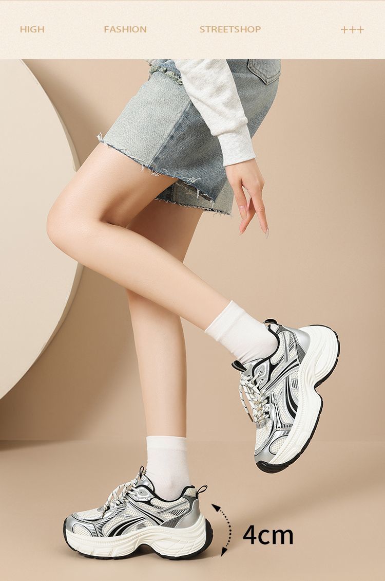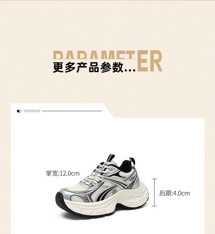 ZHR【增高4cm】厚底银色老爹鞋2026春季新款网面透气运动休闲鞋女