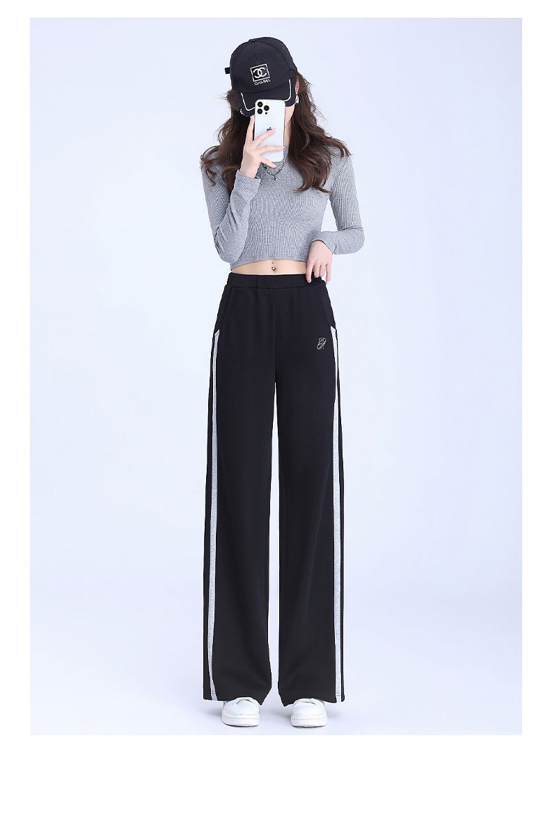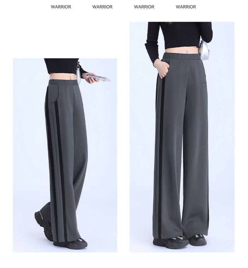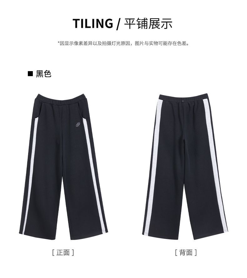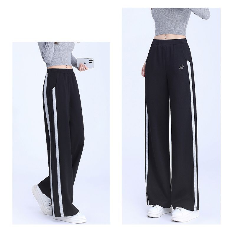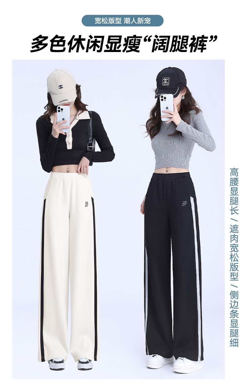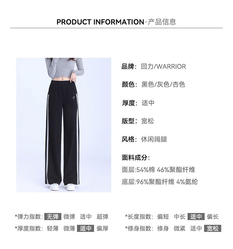 回力黑色运动裤女春季2025新款侧边条纹宽松阔腿直筒卫裤冬季裤子