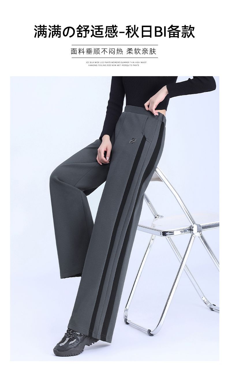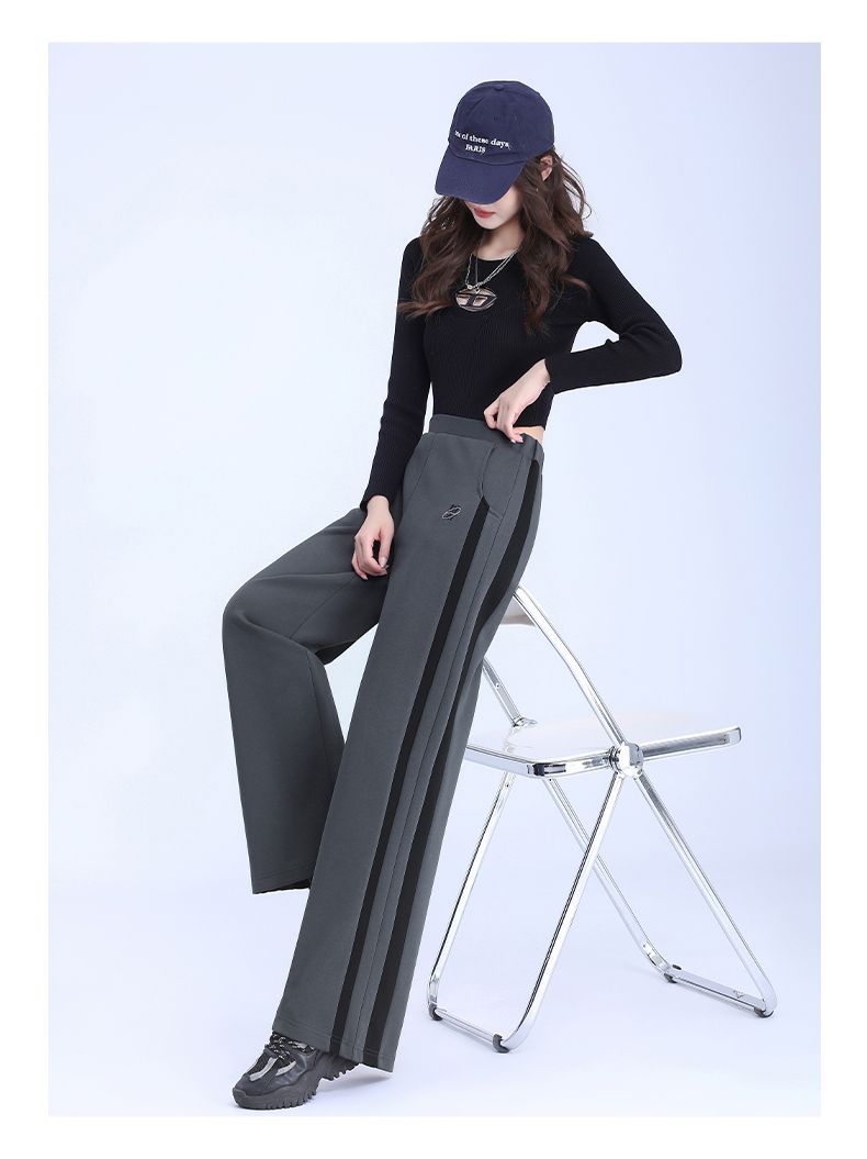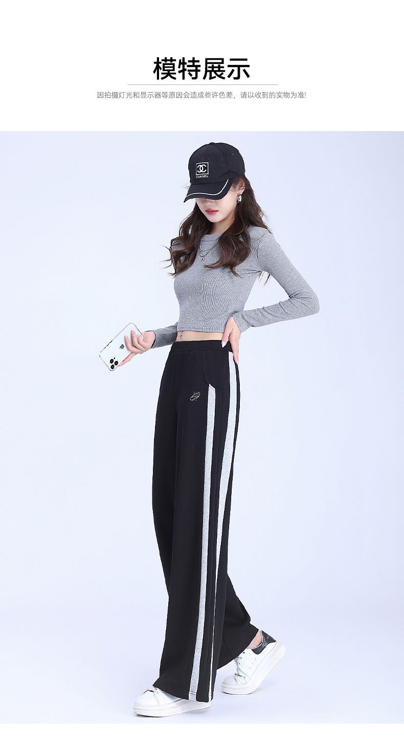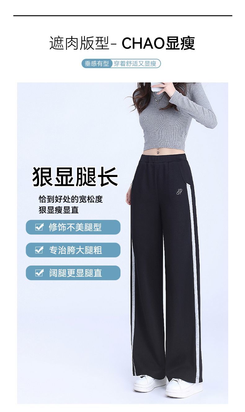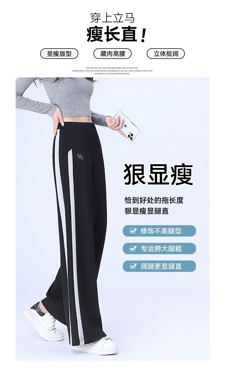 回力黑色运动裤女春季2025新款侧边条纹宽松阔腿直筒卫裤冬季裤子