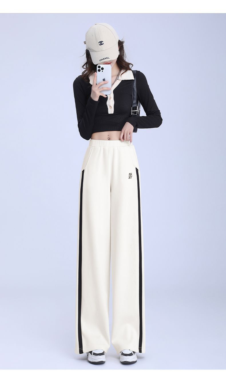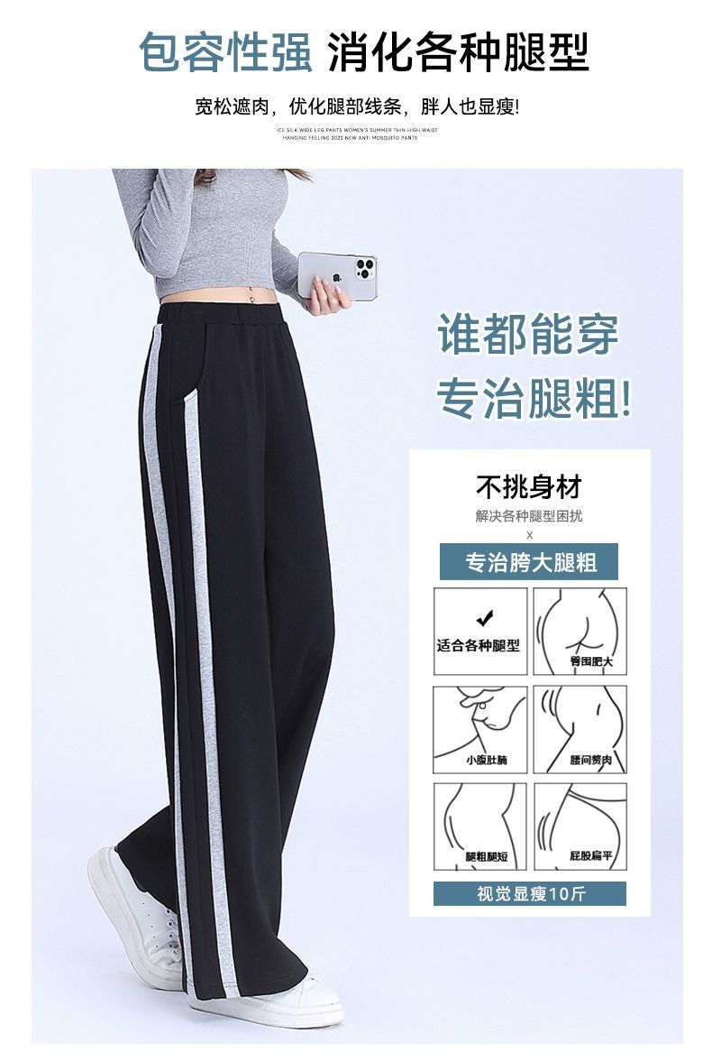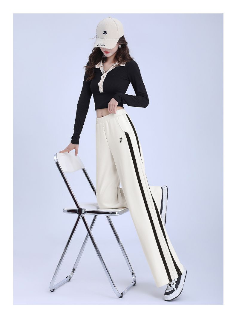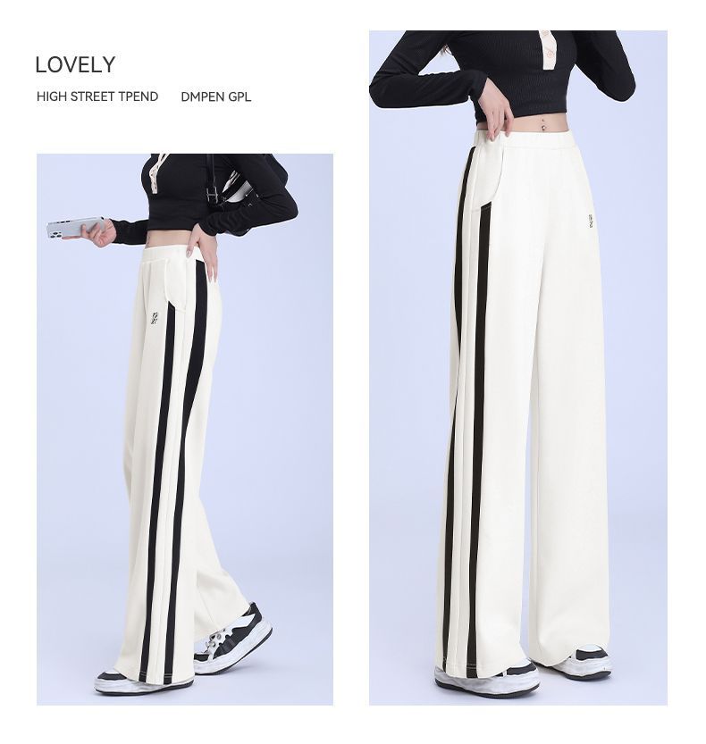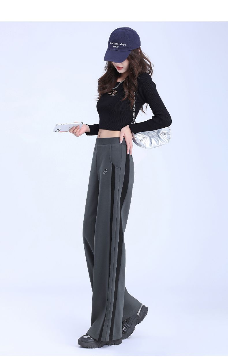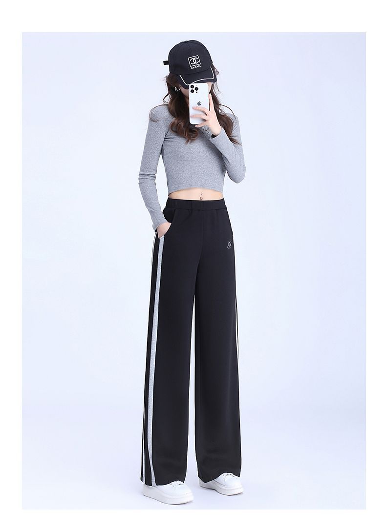 回力黑色运动裤女春季2025新款侧边条纹宽松阔腿直筒卫裤冬季裤子