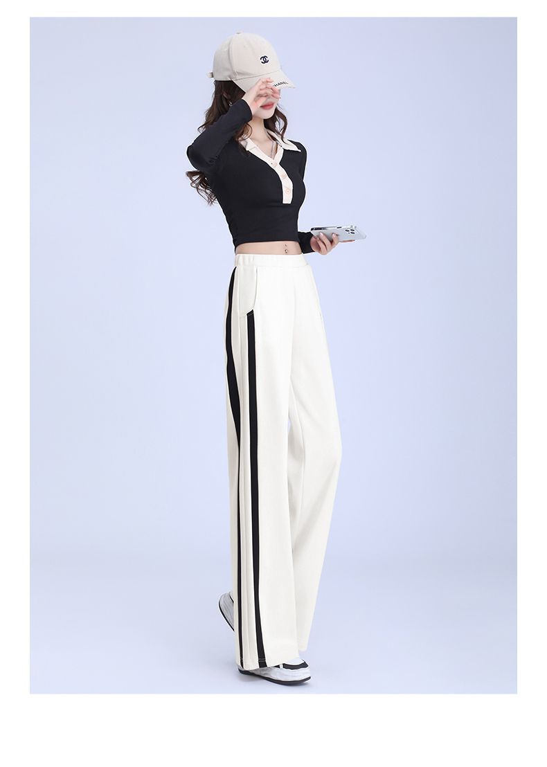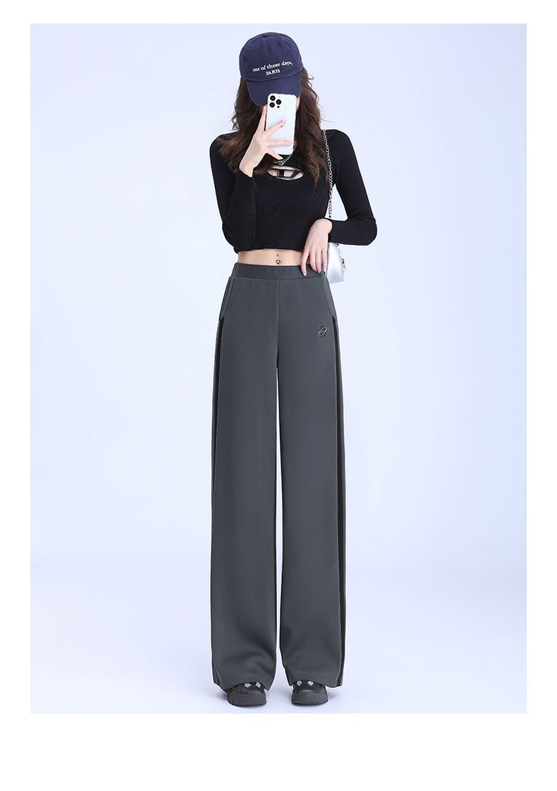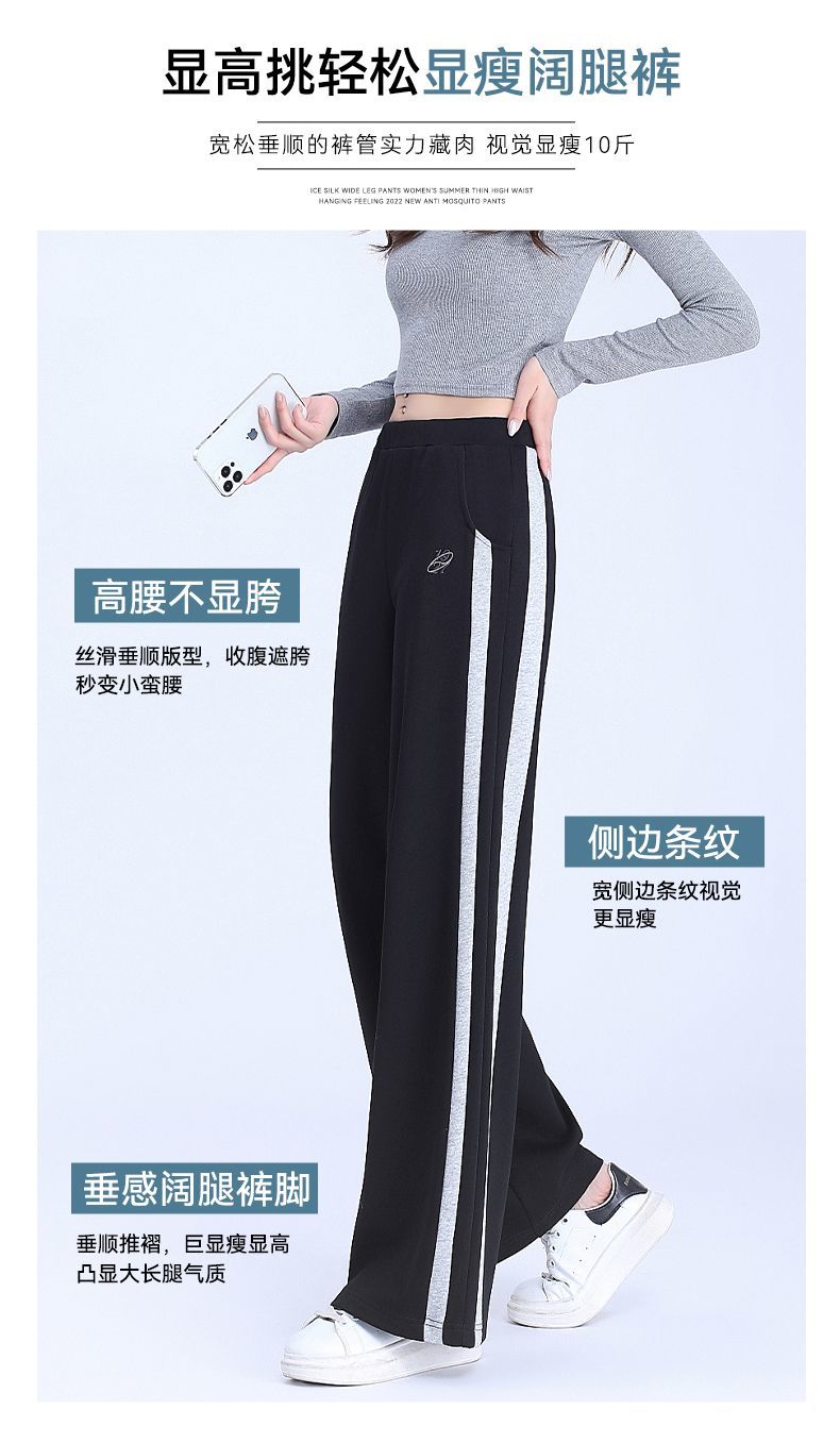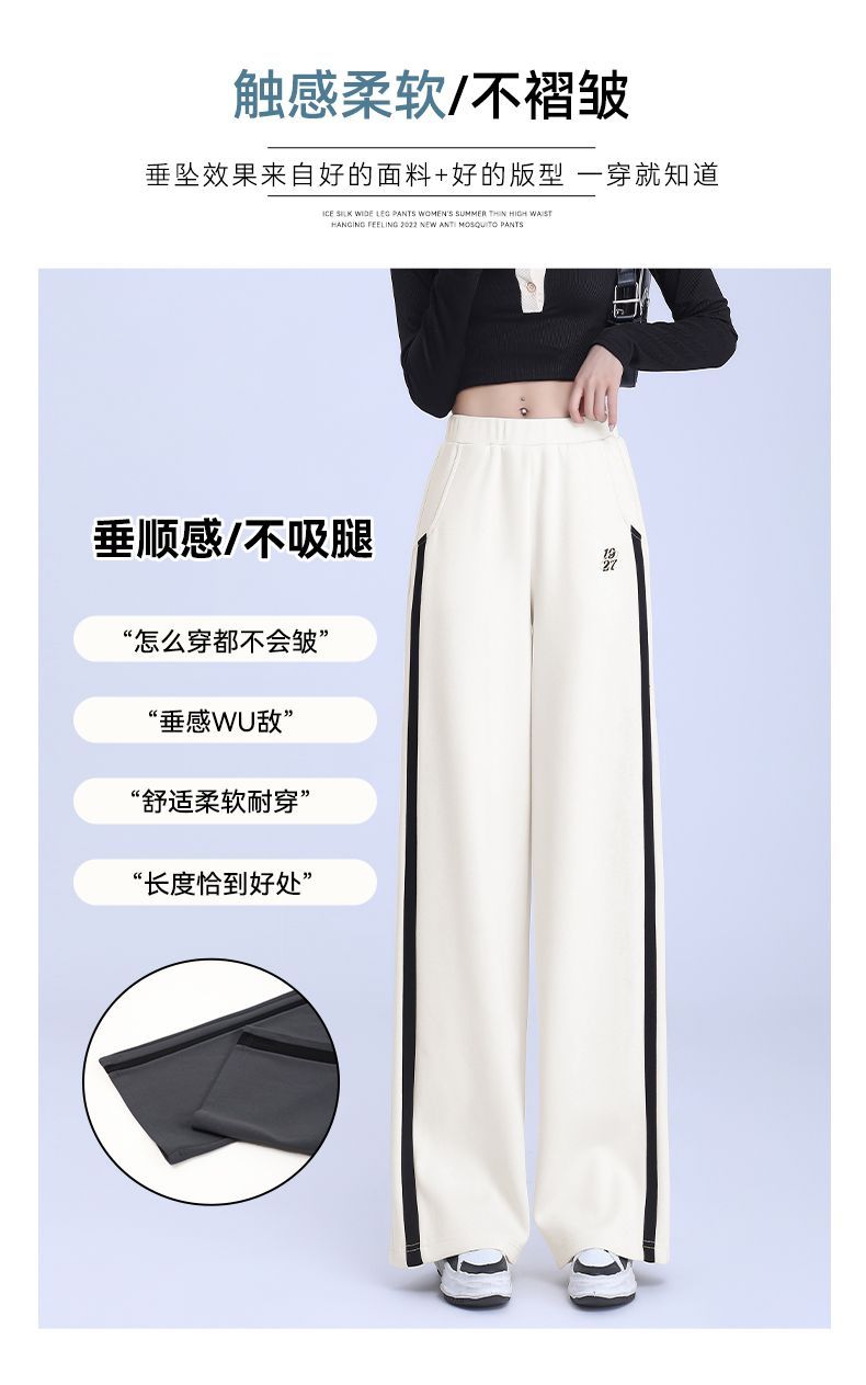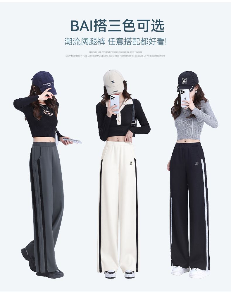 回力黑色运动裤女春季2025新款侧边条纹宽松阔腿直筒卫裤冬季裤子