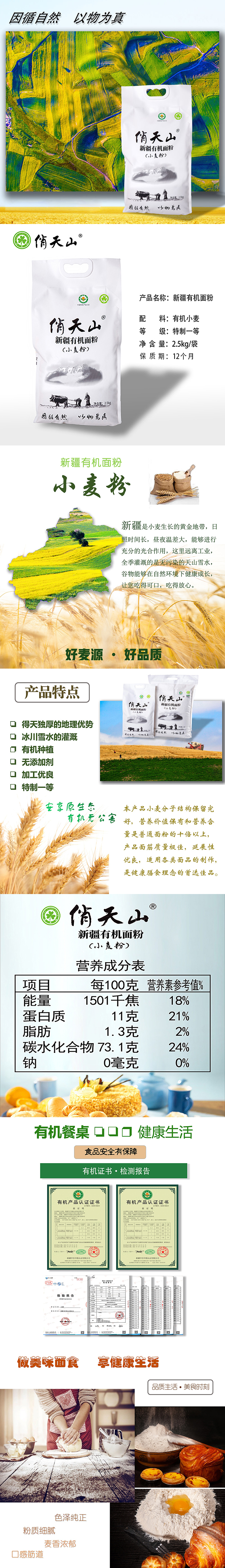 自营(俏天山)- 新疆有机面粉 面食通用小麦粉 2.5kg