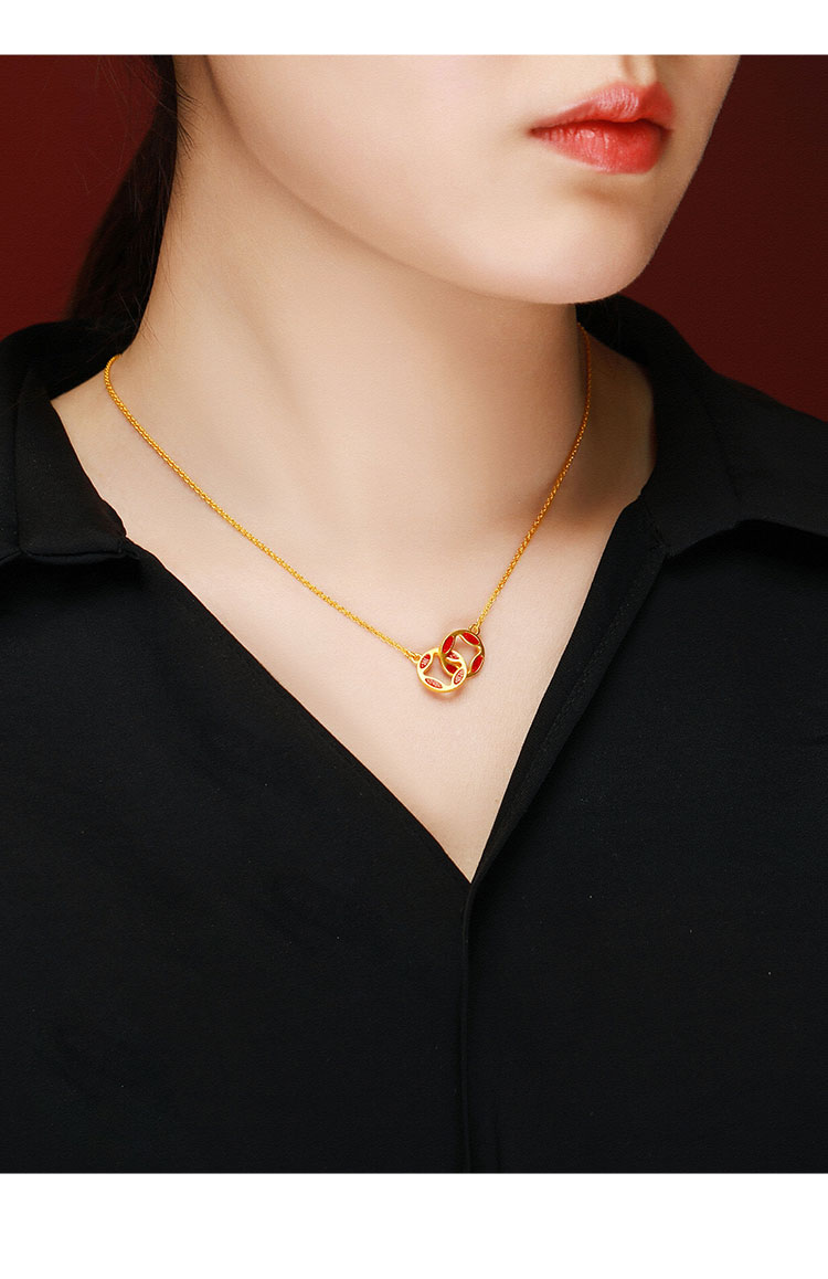 宫匠造办 吉祥如意手链 黄金镶红玛瑙