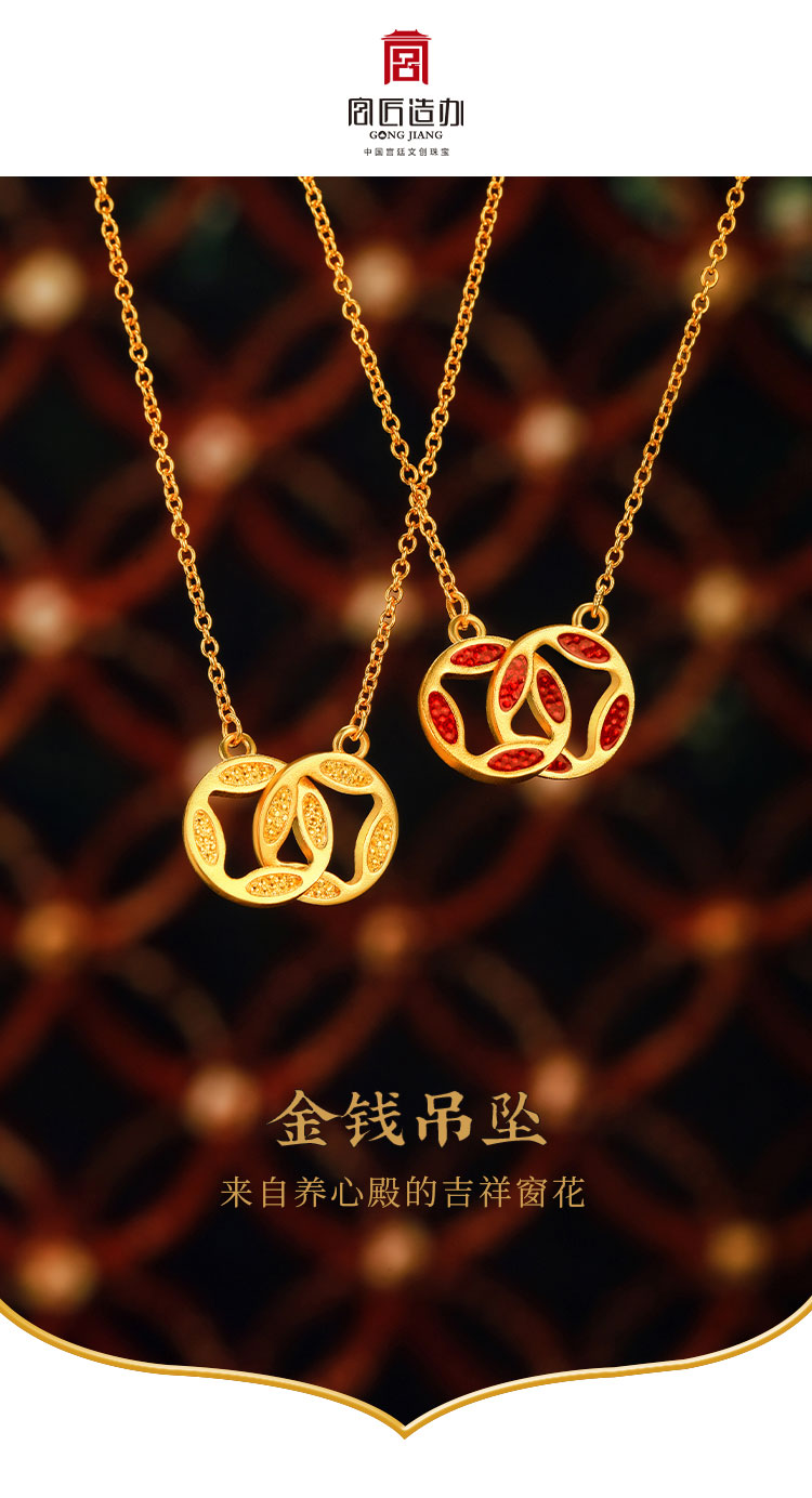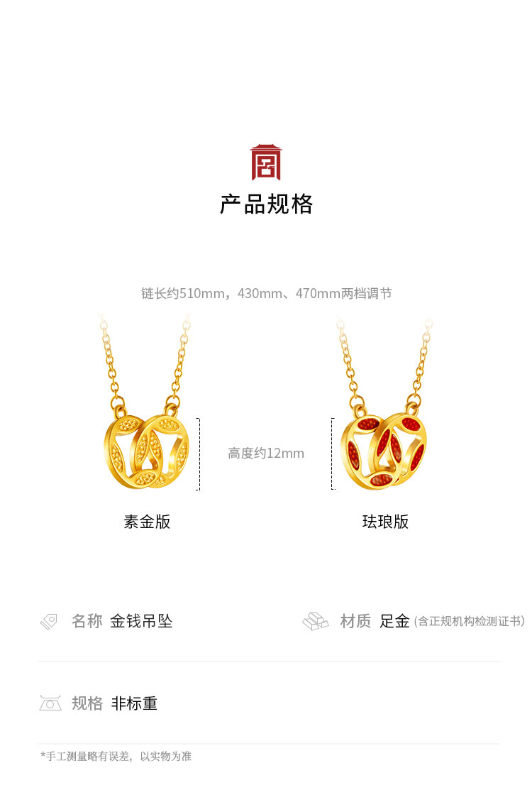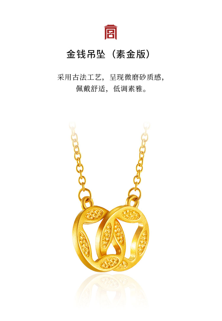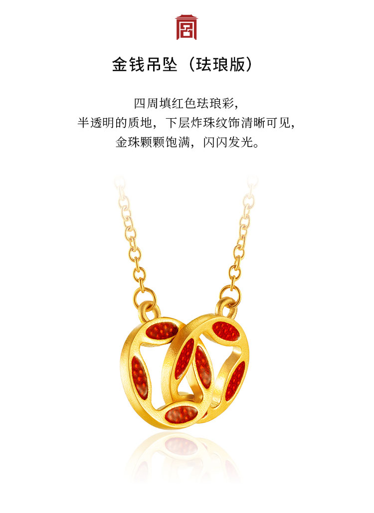 宫匠造办 金钱吊坠 素金版/珐琅版