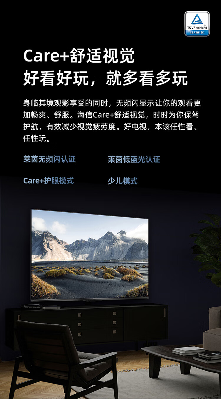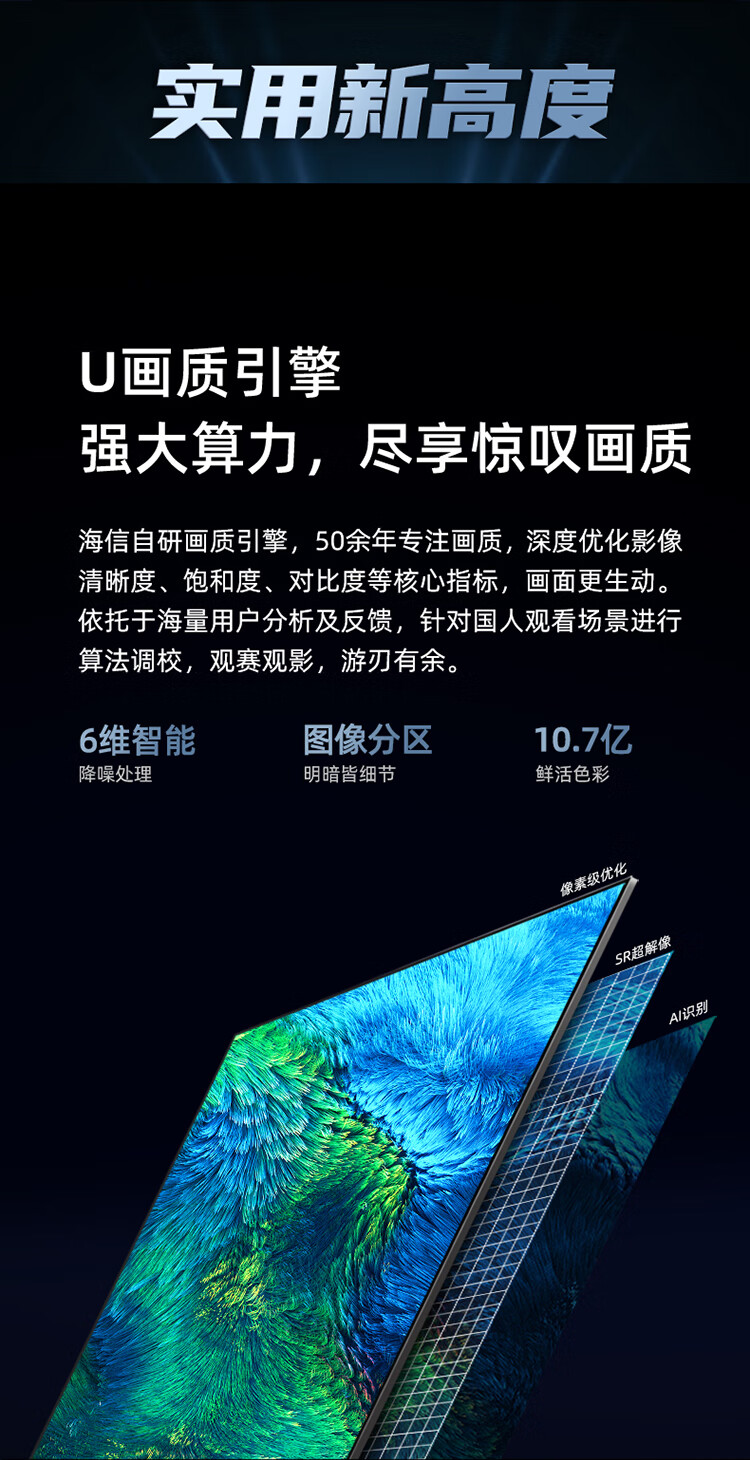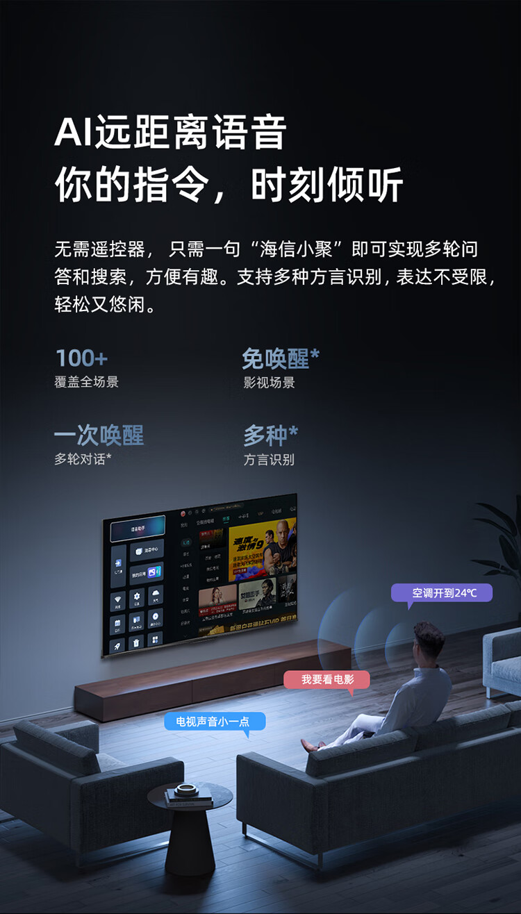 海信电视65E3H 65英寸 4K超高清 悬浮全面屏 远场语音 2+16GB内存 液晶智慧屏
