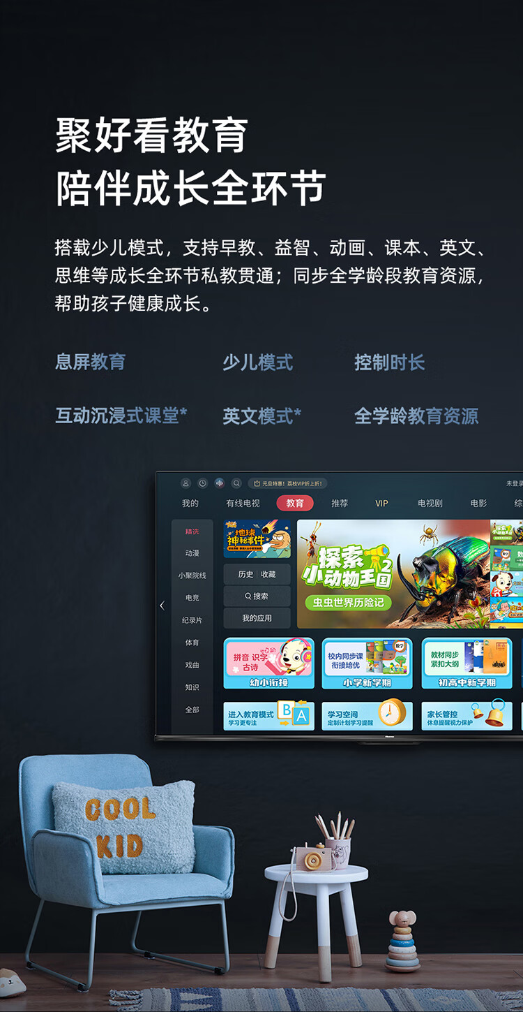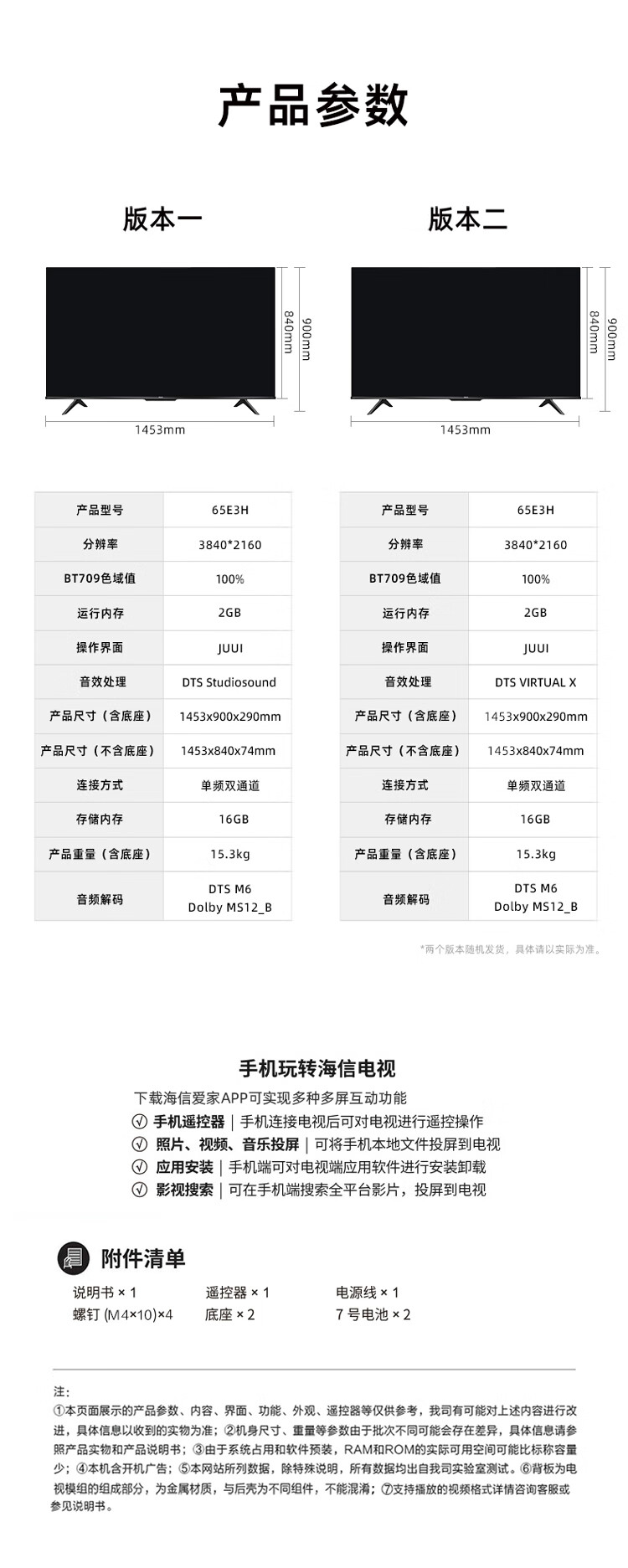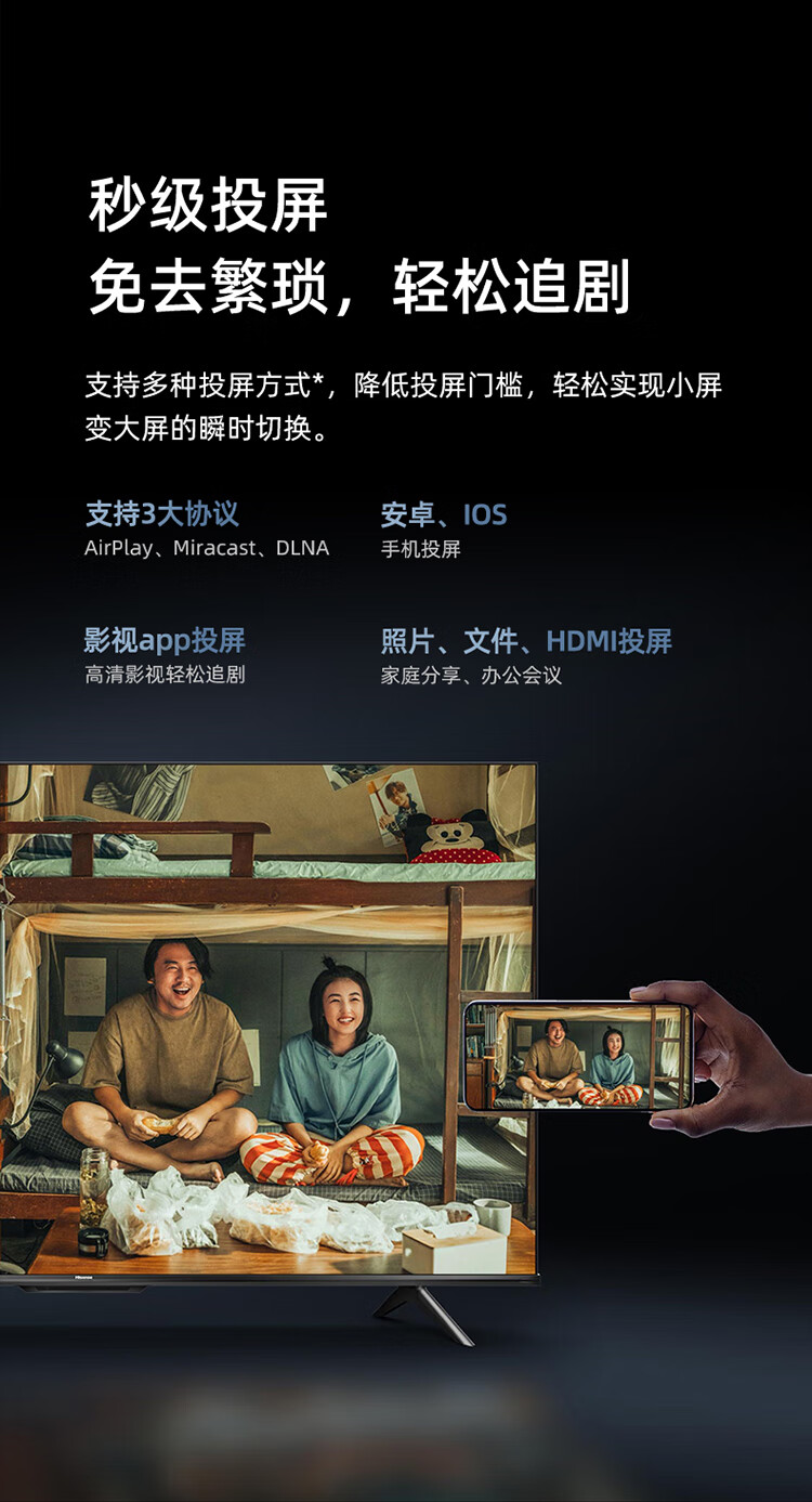 海信电视65E3H 65英寸 4K超高清 悬浮全面屏 远场语音 2+16GB内存 液晶智慧屏