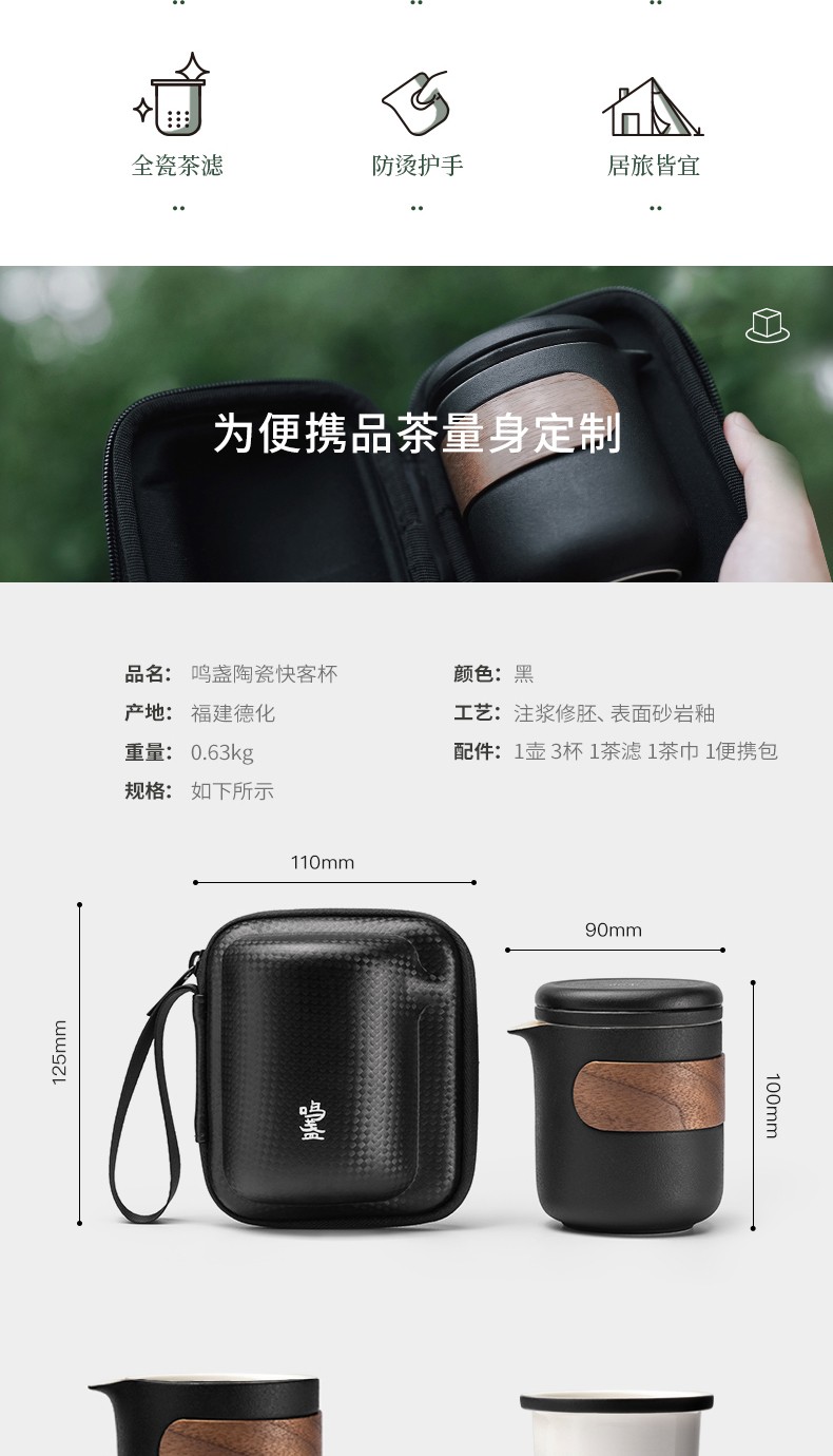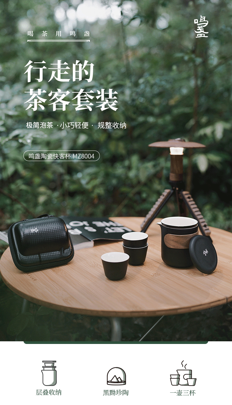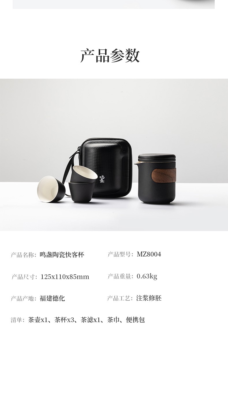 鸣盏|快客杯 旅行陶瓷茶具便携式泡茶功夫茶杯户外茶壶 MZ-8004