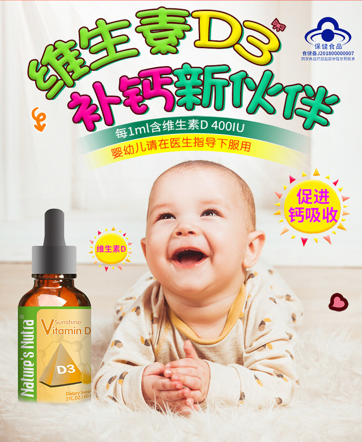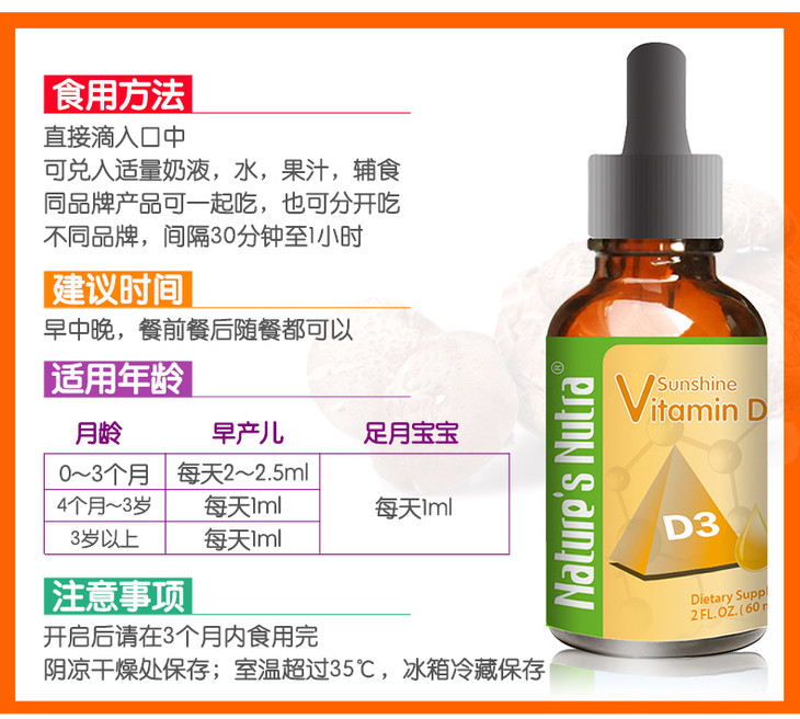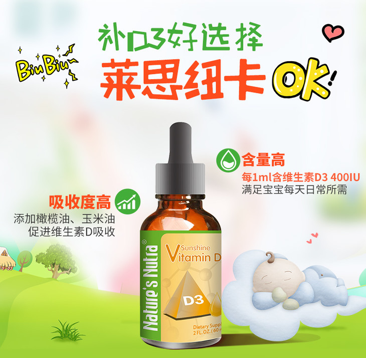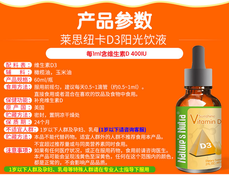 美国莱思纽卡维生素D3滴剂60ml(莱思纽卡任选2个包邮)