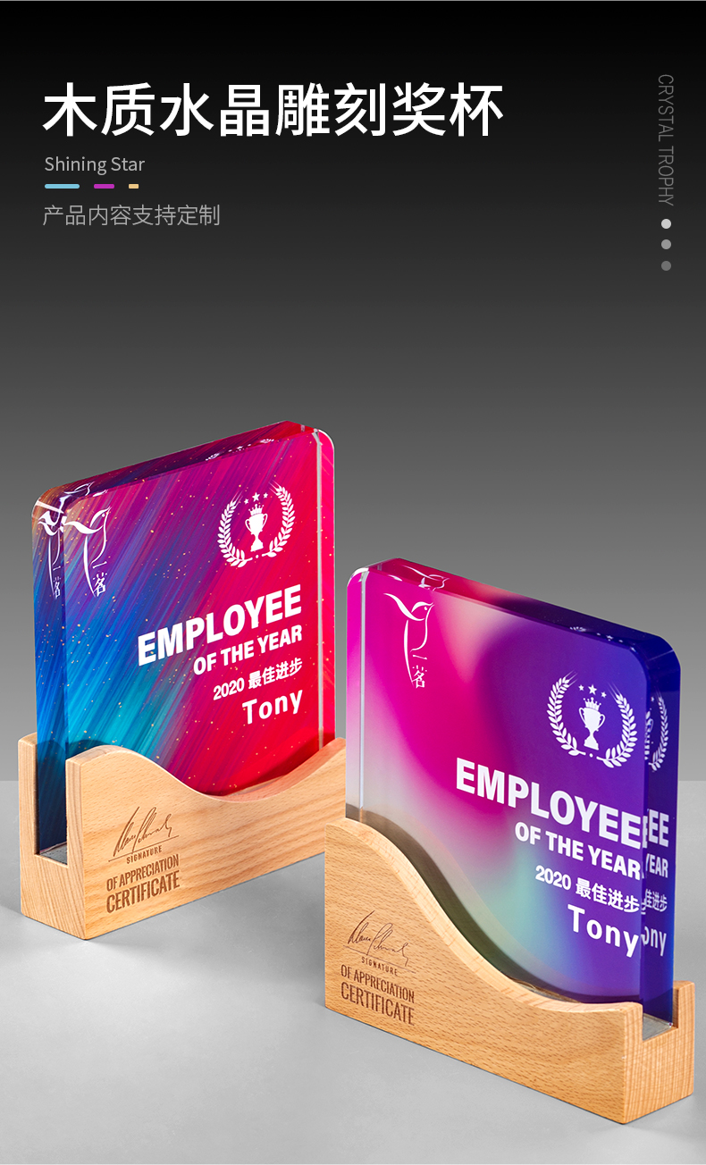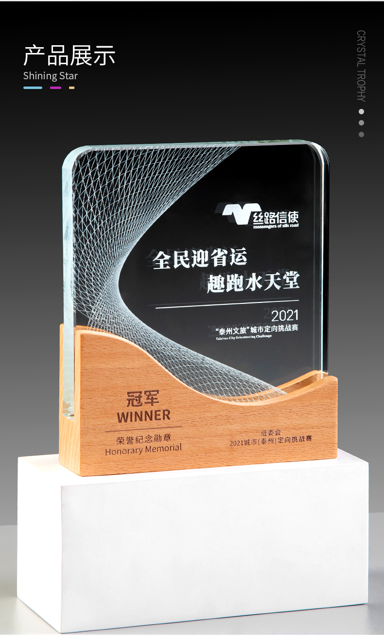 实木质水晶奖杯定制定做创意刻字企业冠军比赛颁奖制作纪念品奖牌
