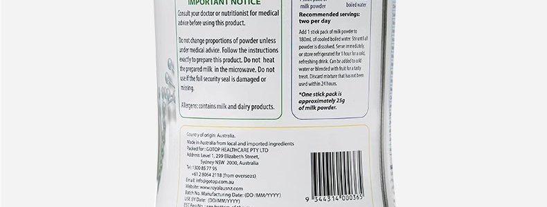 【保税】澳洲 皇家澳纽(Royal AUSNZ)儿童成长奶粉500g/罐(皇家澳纽高高)