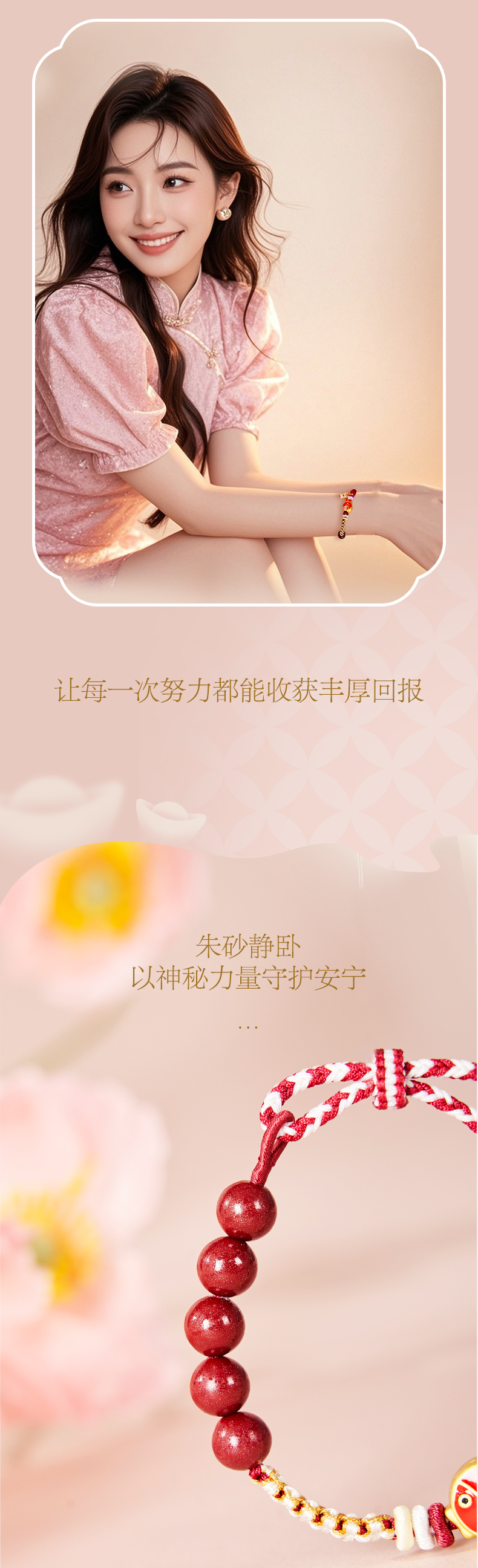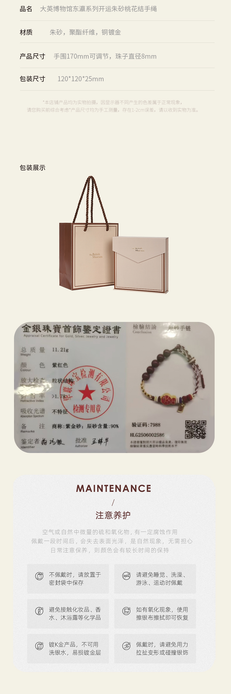 大英博物馆 东瀛系列 开运朱砂桃花结 手绳
