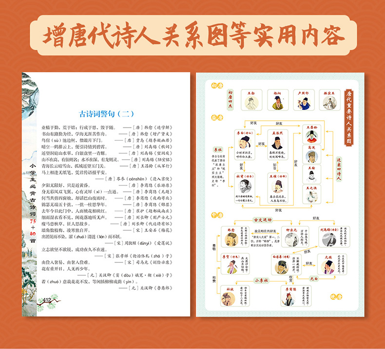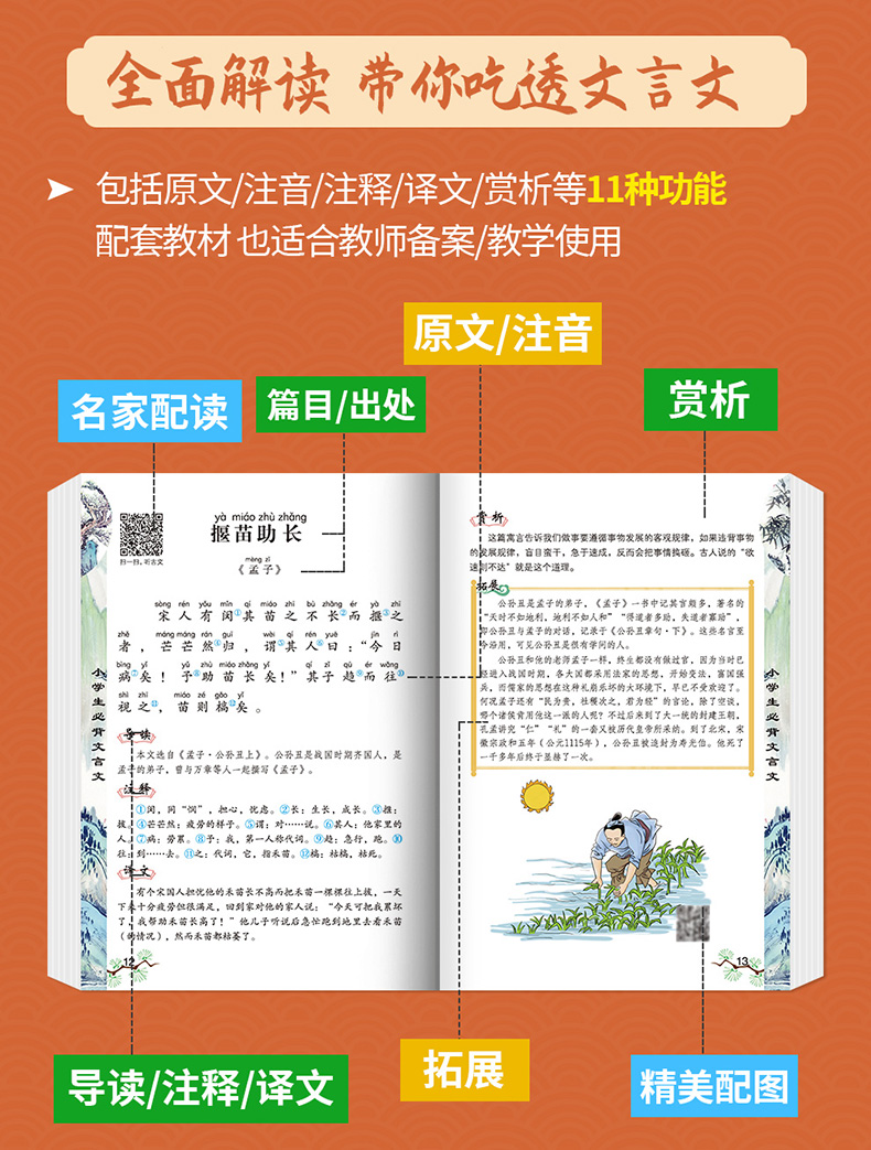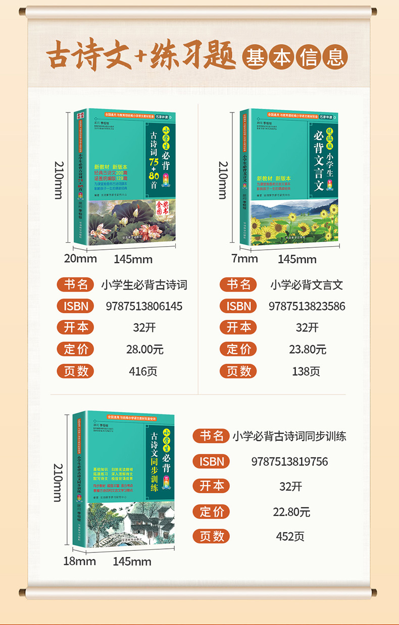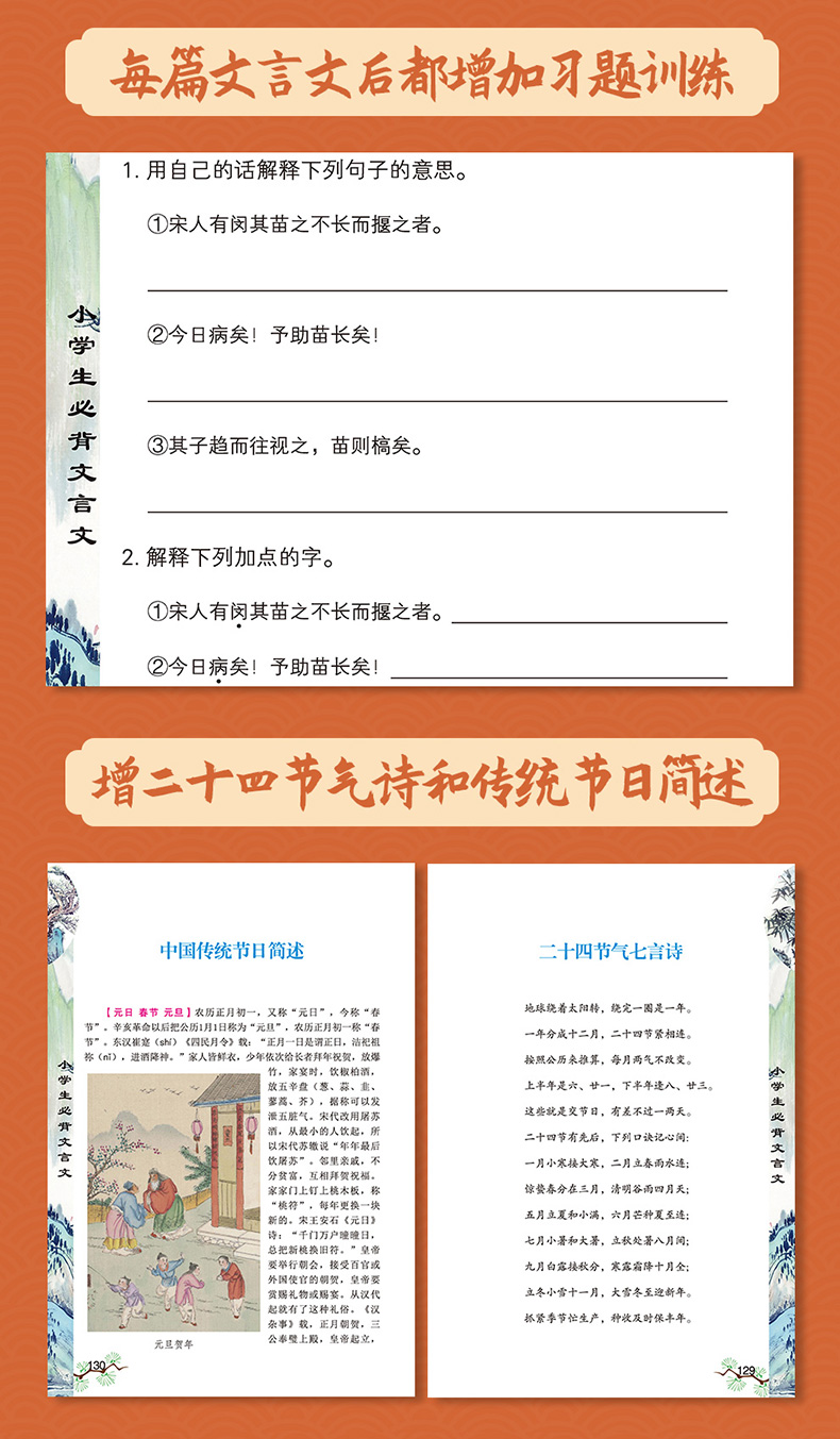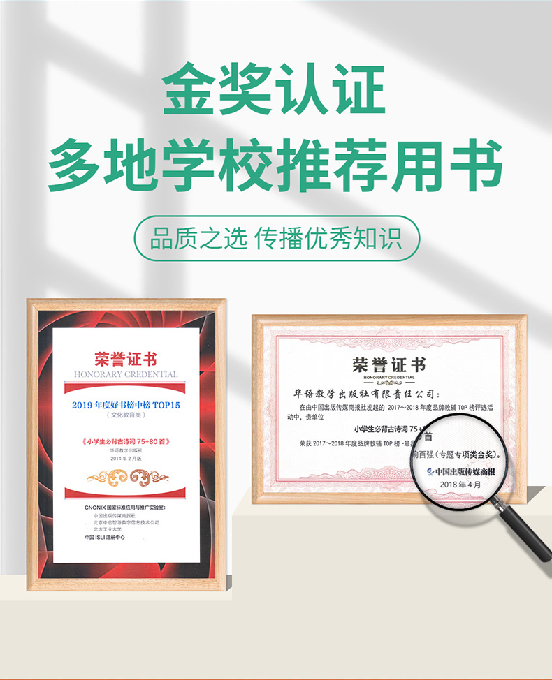 【416页 完整译注】华语 小学生必背古诗词+古诗词同步训练+必背文言文小学通用 彩图注音版