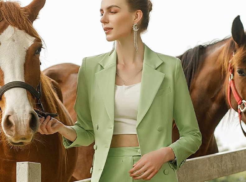 IWY/绿色西装套装女时尚高端职业装美容工作服气质上镜主持人正装221005C1+P3