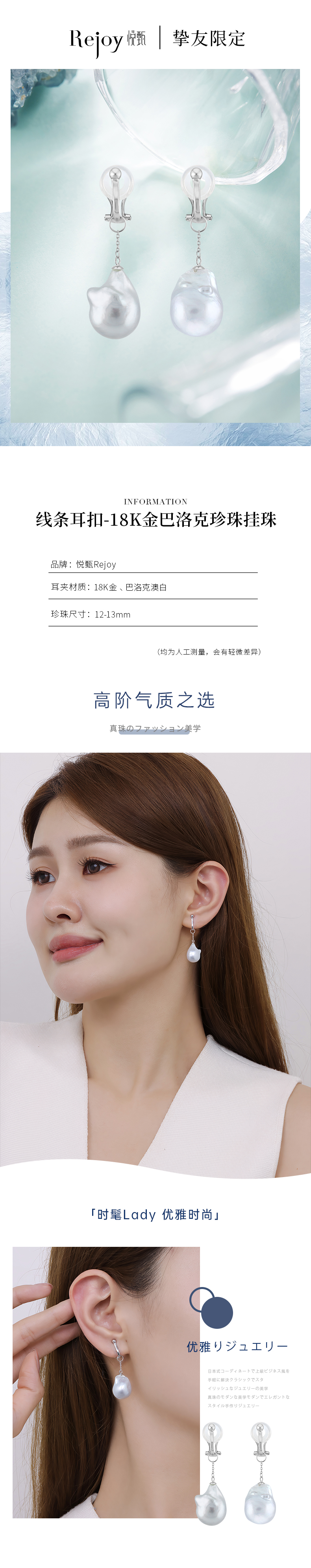 【挚友限定】线条耳扣款-18K金巴洛克珍珠挂珠