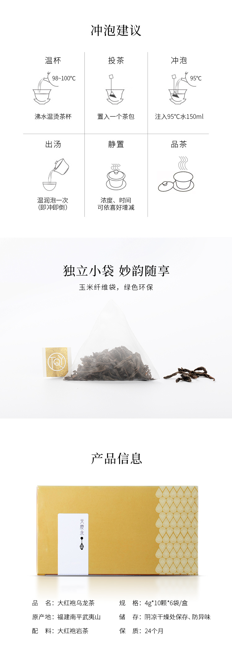 【天庆永】茗茶 大红袍乌龙茶 三角茶包4gx10/袋*6袋/盒 补充盒 武夷山岩茶