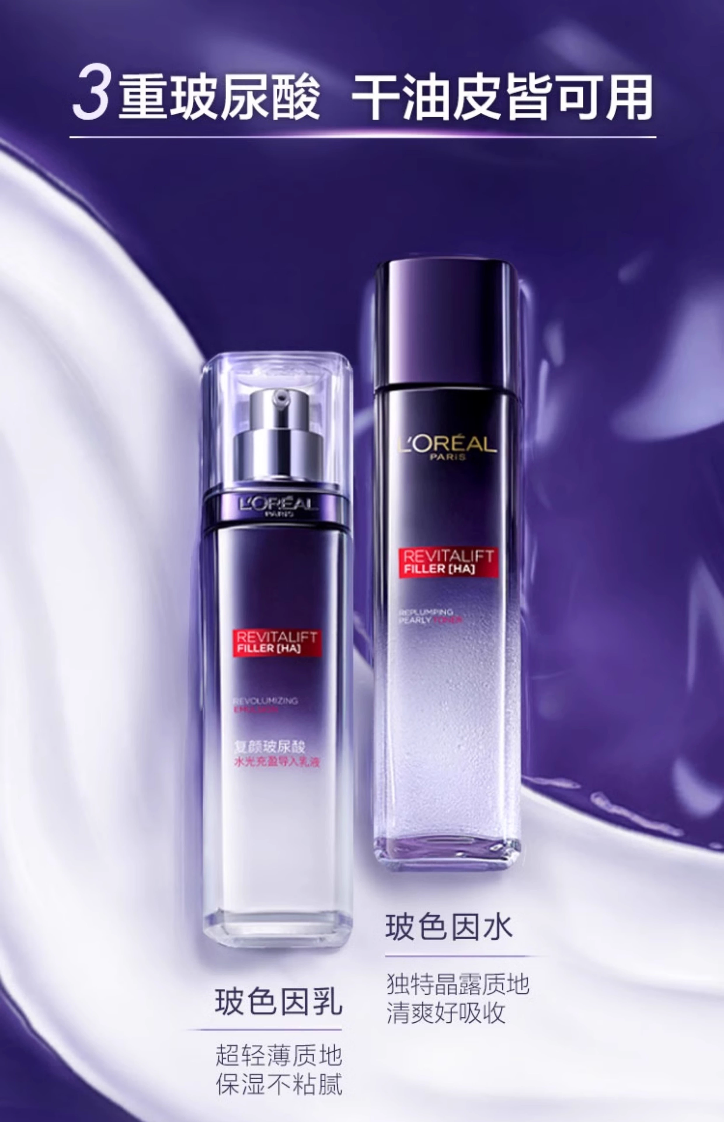 欧莱雅 复颜玻尿酸水光充盈玻色因水乳套装