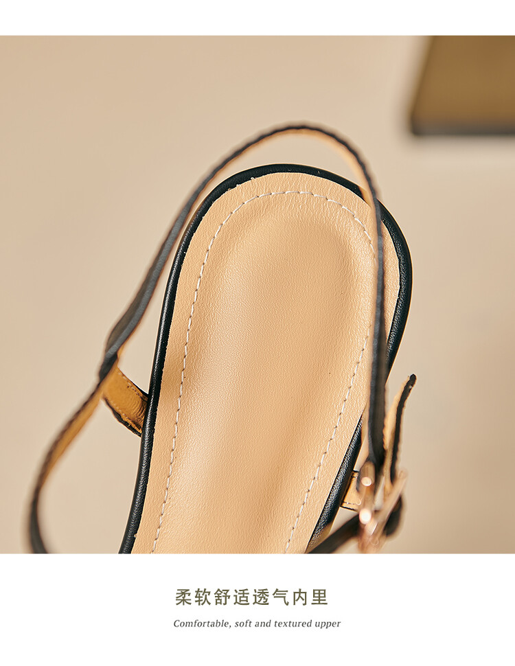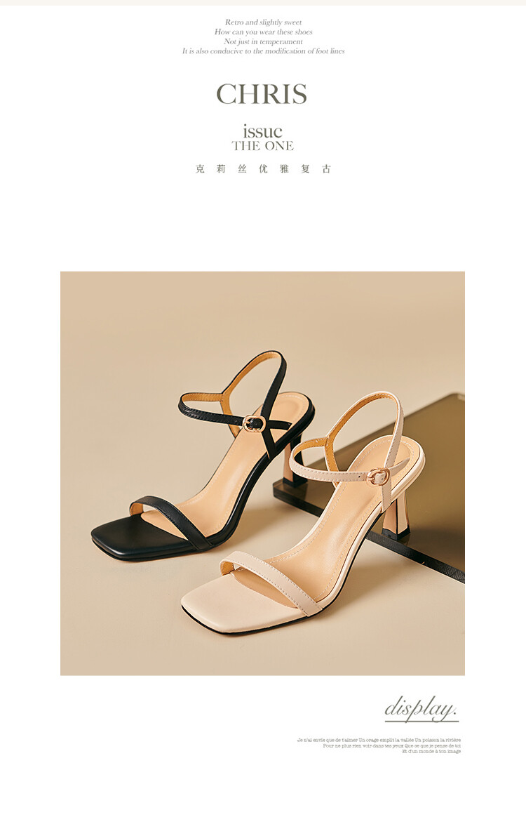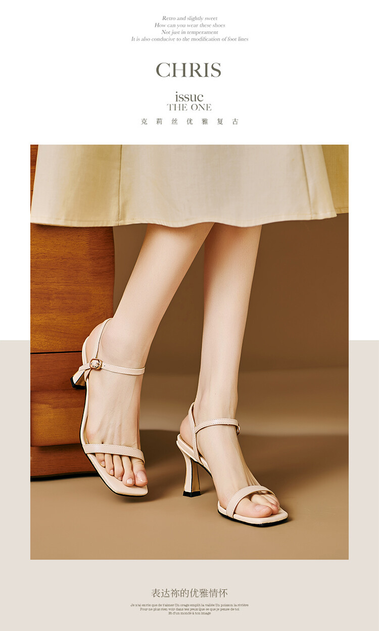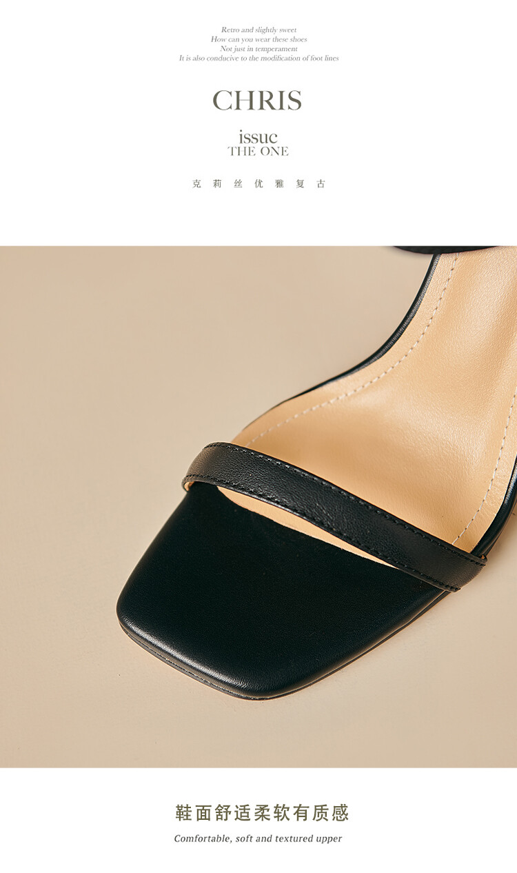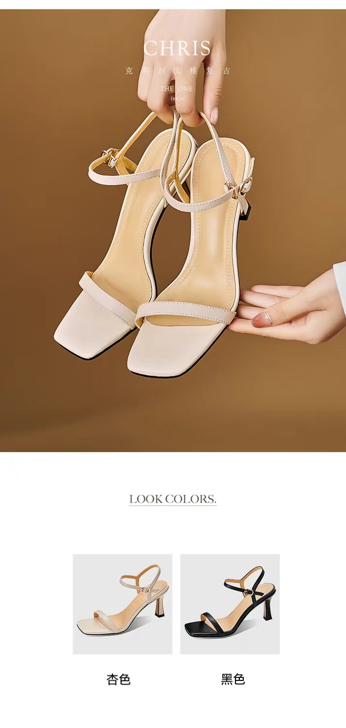 【预售5天】chic简约法式,一字扣带露趾粗跟凉鞋QS&9976