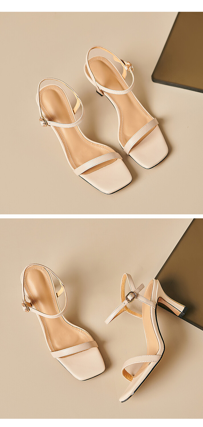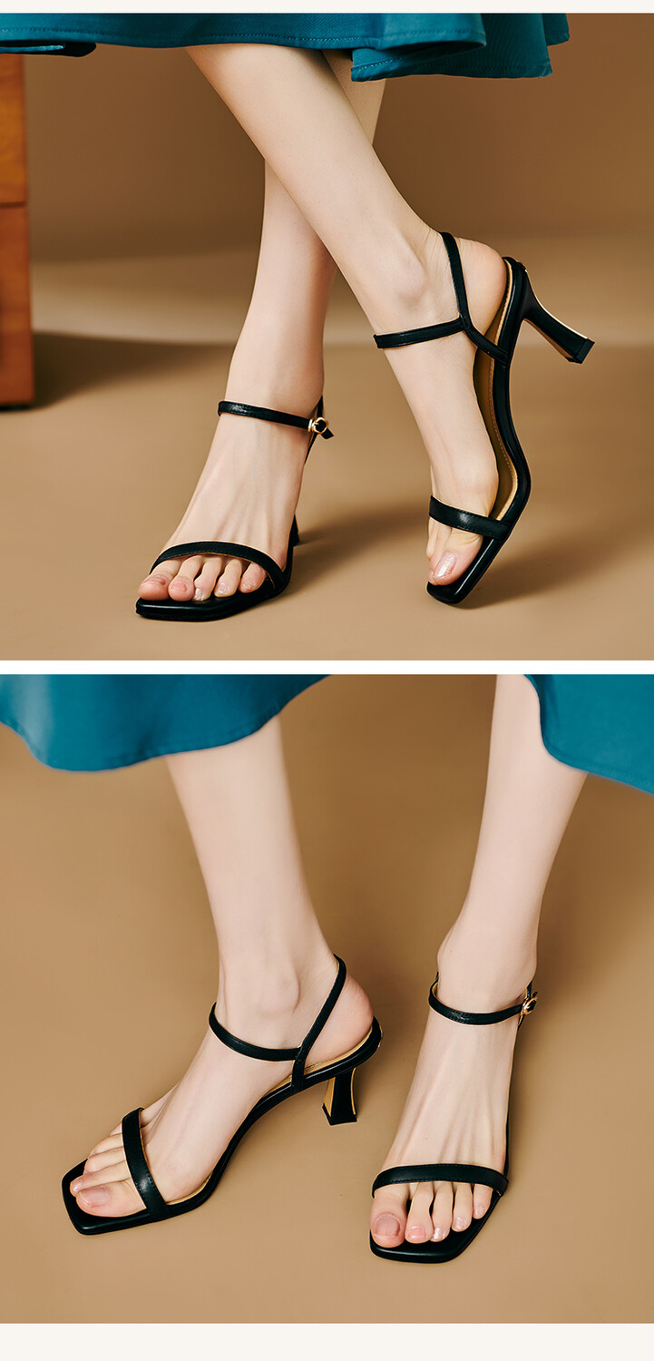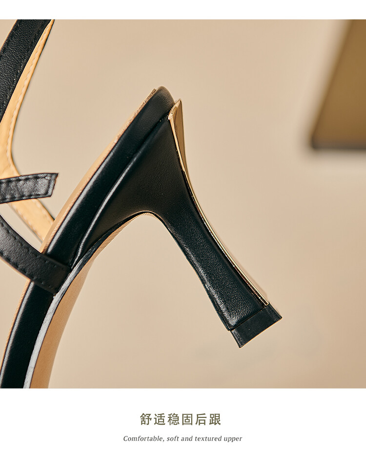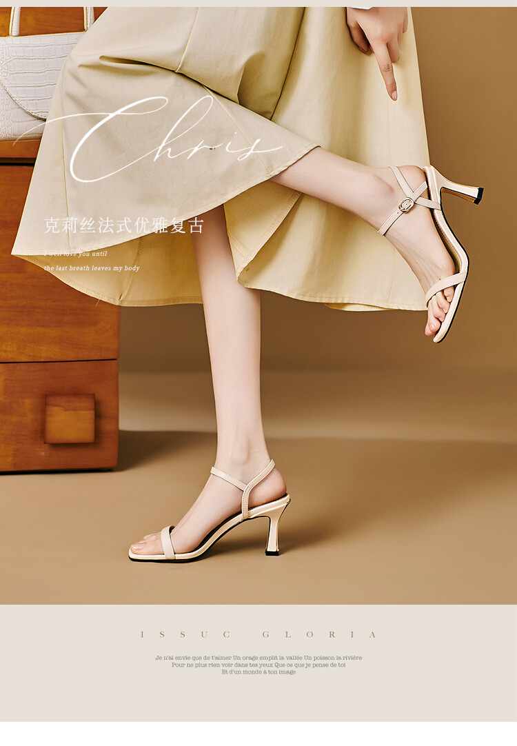 【预售5天】chic简约法式,一字扣带露趾粗跟凉鞋QS&9976