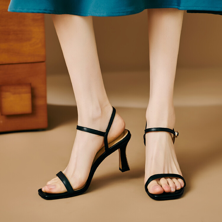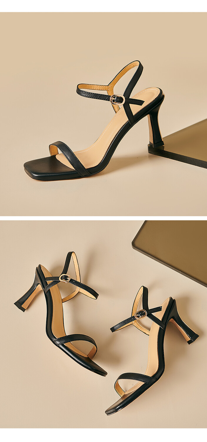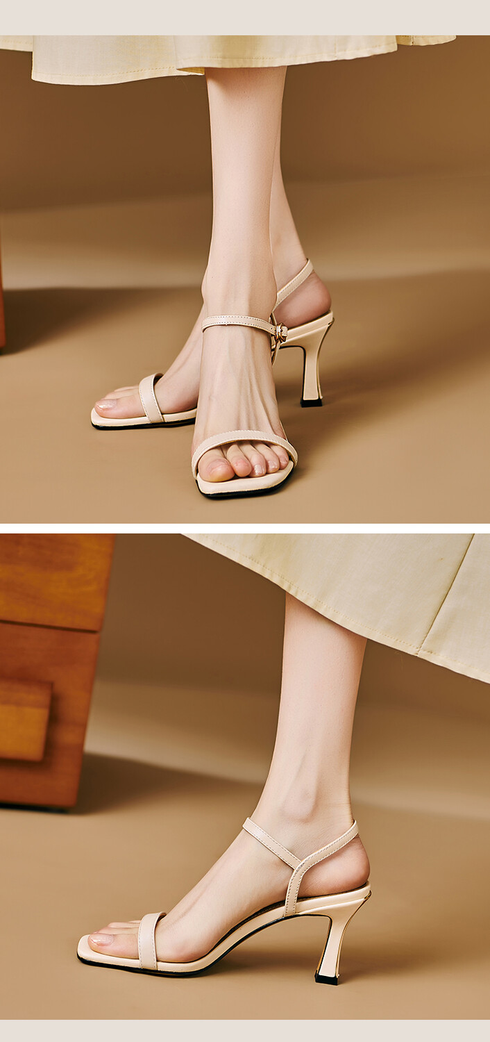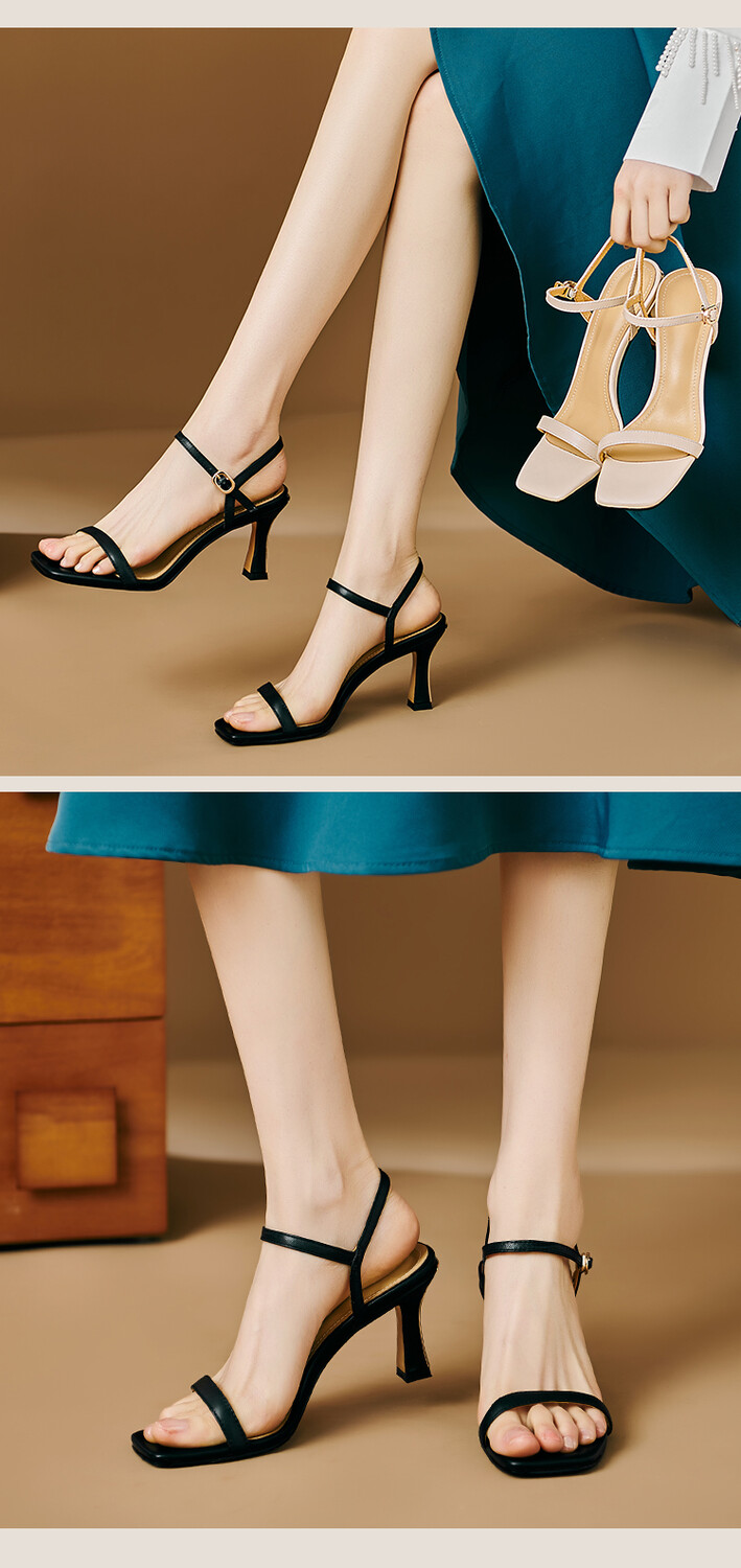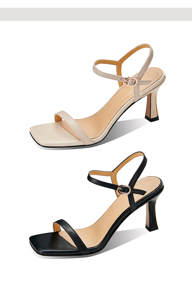 【预售5天】chic简约法式,一字扣带露趾粗跟凉鞋QS&9976