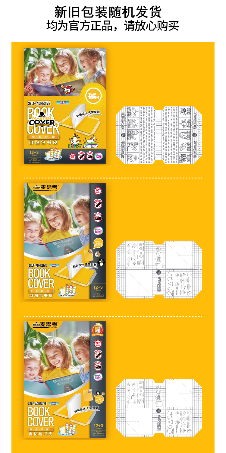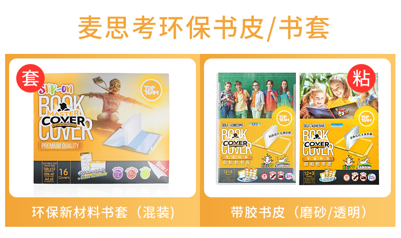 麦思考环保书皮包书皮自粘书膜小学生用全套透明膜光面磨砂防水书套