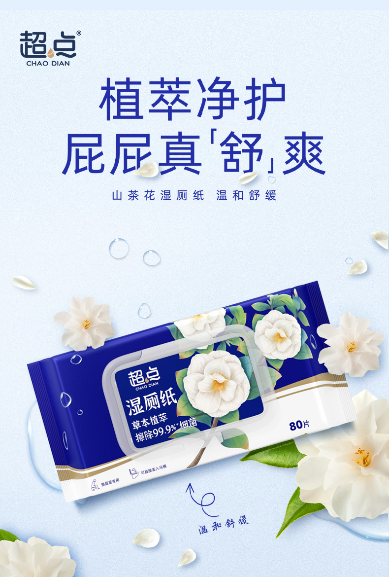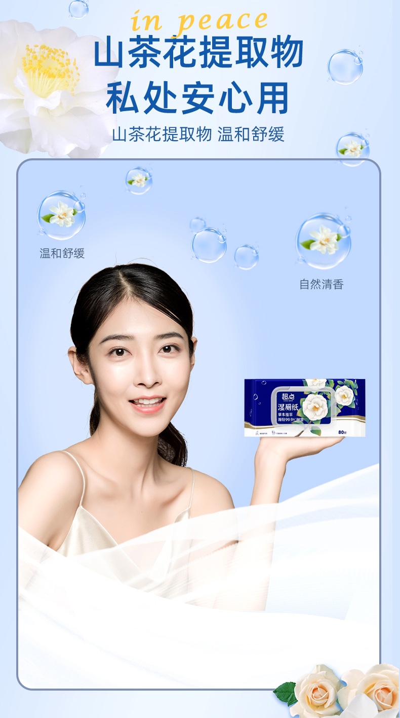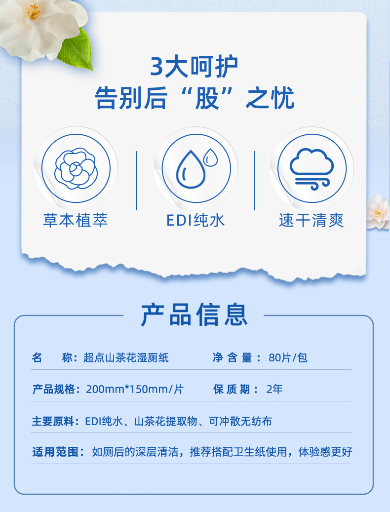 花粉专享👍【山茶花湿厕纸组合装】整26包!80抽*8包+便携10抽*8包+童话湿巾10抽*10包,①经12道工序过滤净化纯水②加拿大进口原生木浆③细菌擦除率达99.99%④马桶可冲散⑤点断式抽取专利